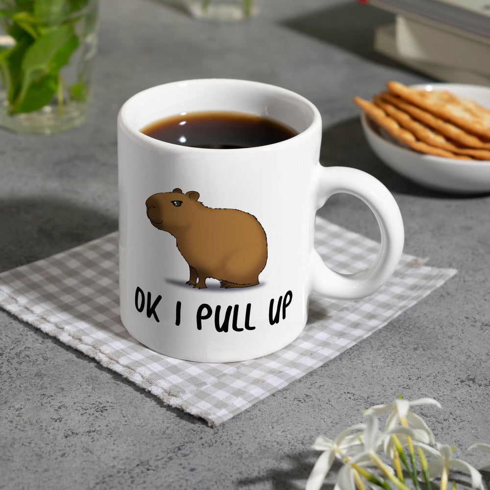 • 1x Ok I pull up normales Capybara Meme Kaffeebecher in der gewählten Ausführung