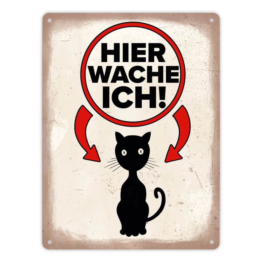 Hier wohnt eine Katze mit ihrem Personal Metallschild in 15x20 cm