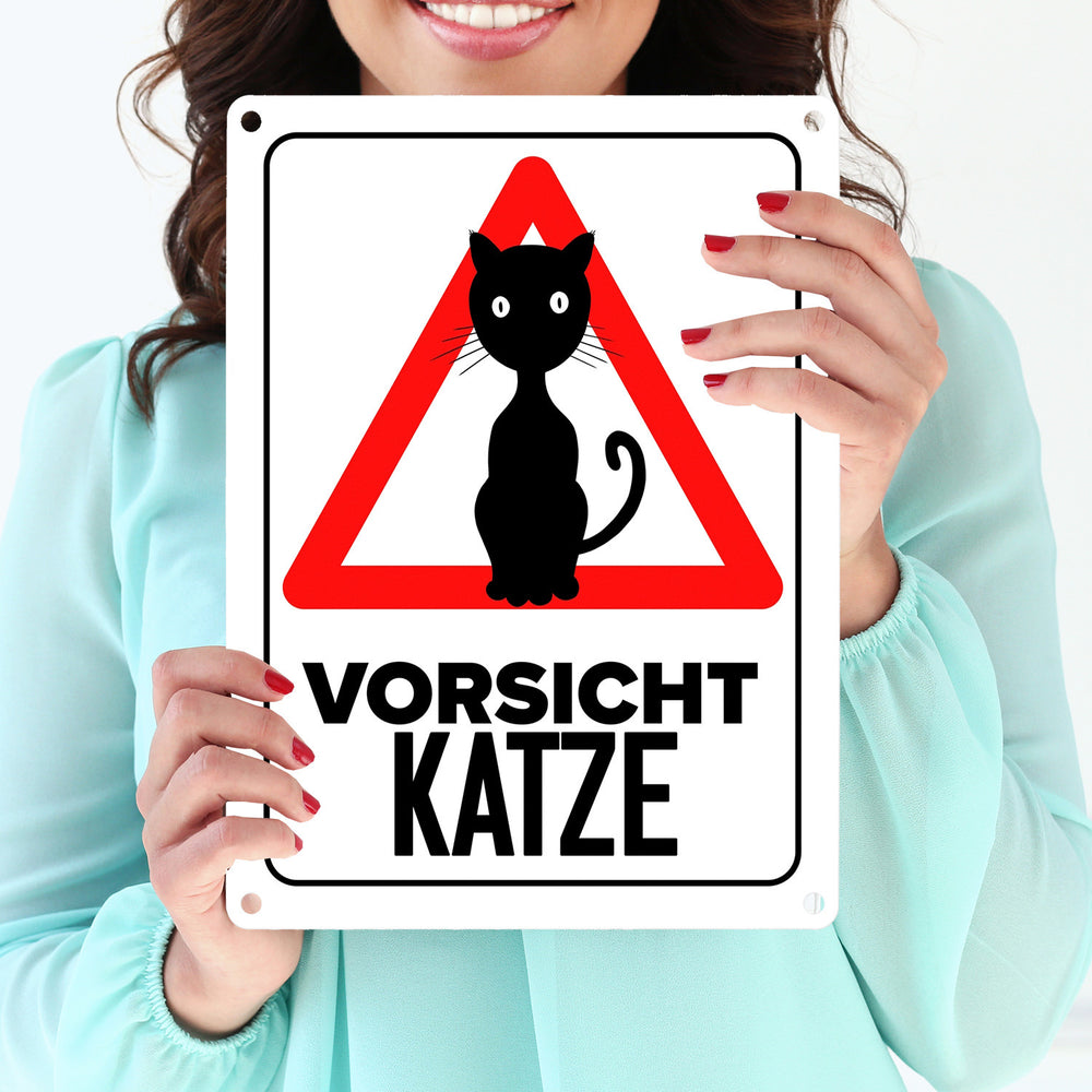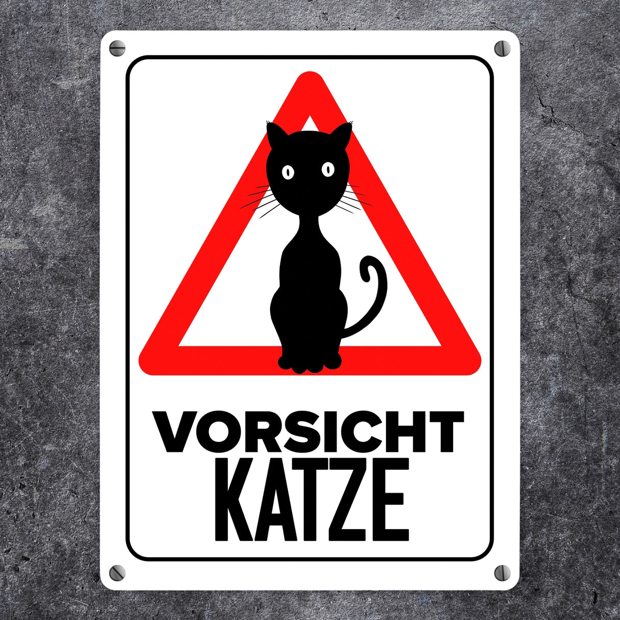 • 1x Vorsicht Katze Metallschild mit Katzen Silhouette in der gewählten Größe