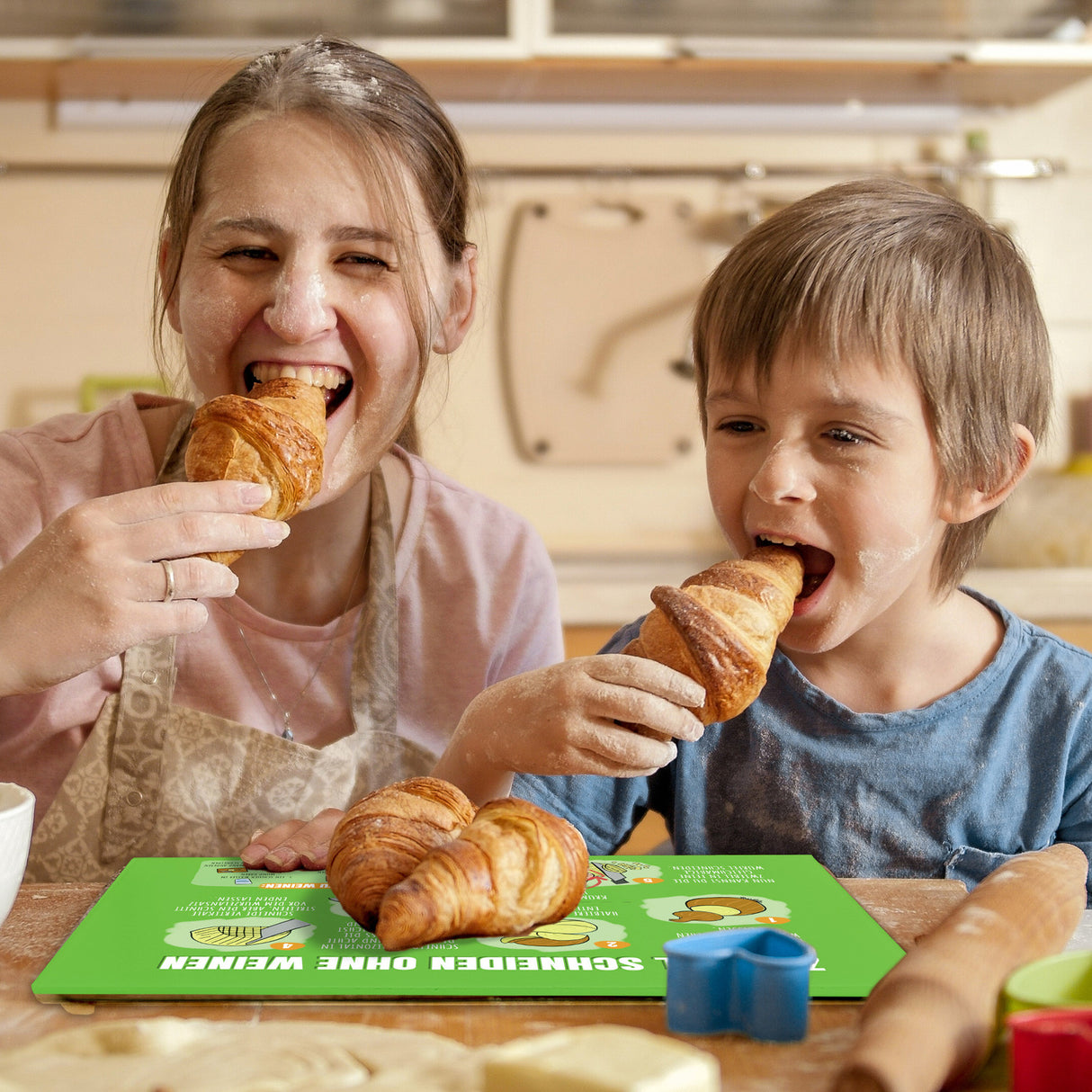 Gute Mütter Schneidebrett aus Glas mit Spruch Kinder dürfen die Rührbesen abschlecken