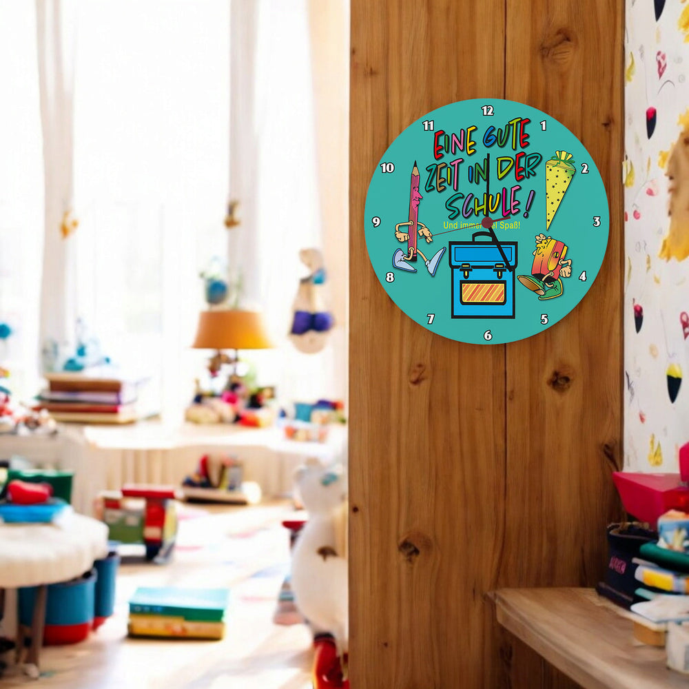 Schulkind Wanduhr mit Spruch: Gute Zeit und viel Spaß!
