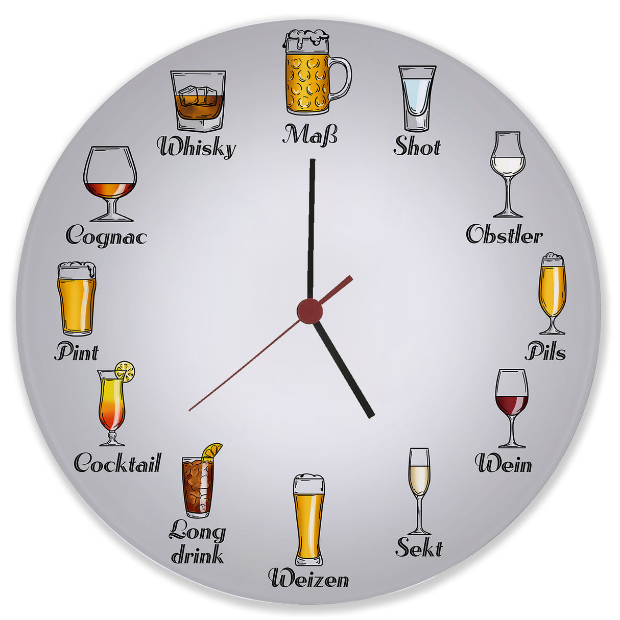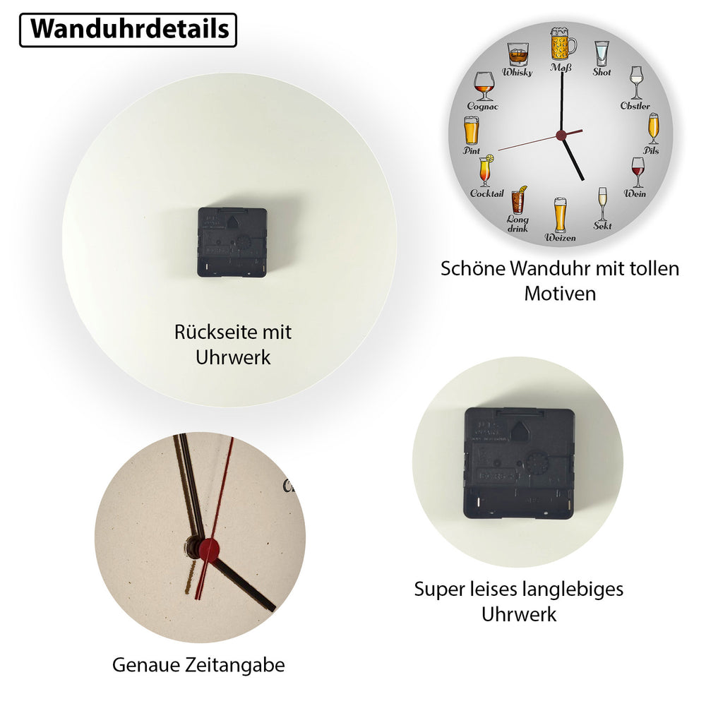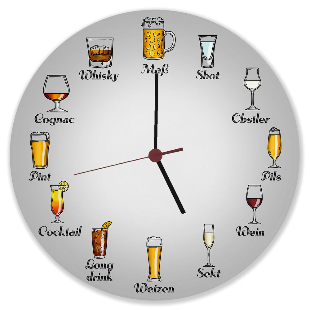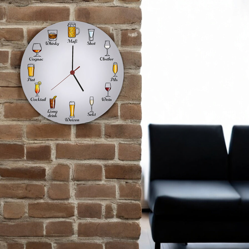 • 1x Alkoholische Getränke Wanduhr mit Bier, Wein und Co. in der gewählten Variante