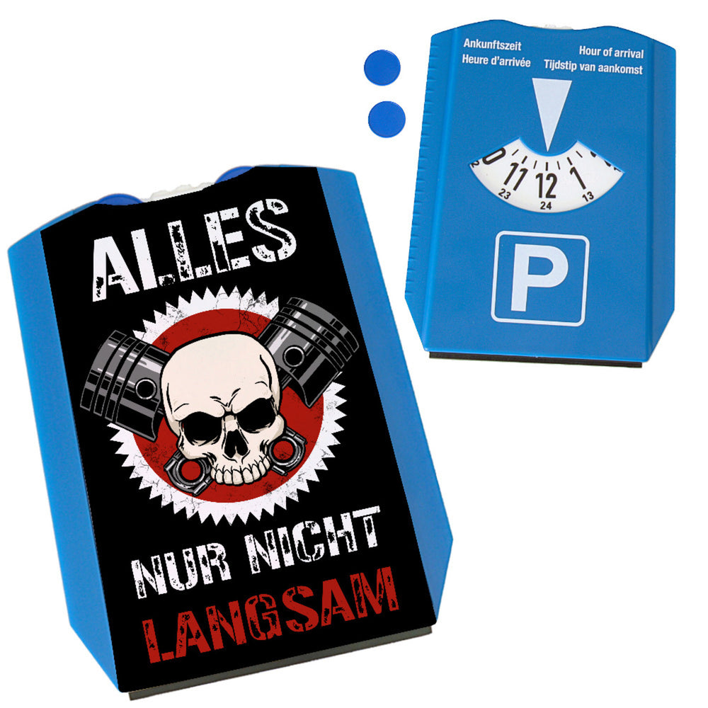 Alles nur nicht langsam Parkscheibe mit Totenkopf und Kolben