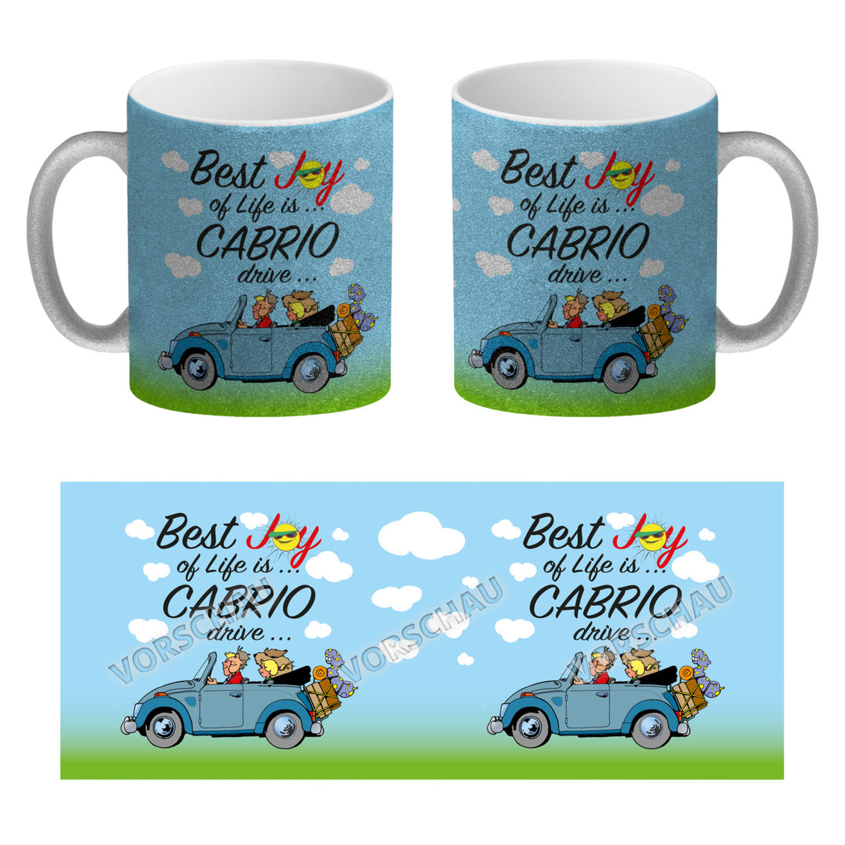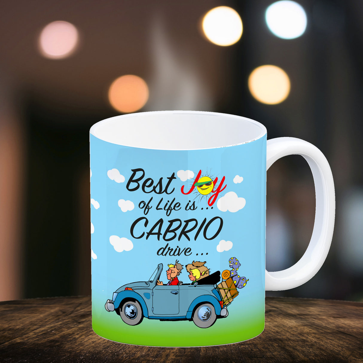 - 1x Best Joy of Life is Cabrio Drive Kaffeebecher in der gewählten Ausführung