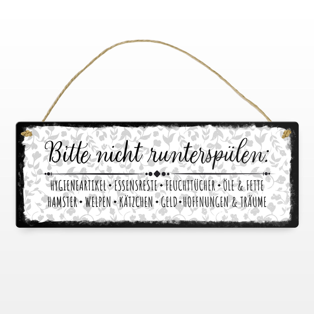 • 1x Bitte nicht runterspülen Toiletten Metallschild im Vintage-Look in der gewählten Größe