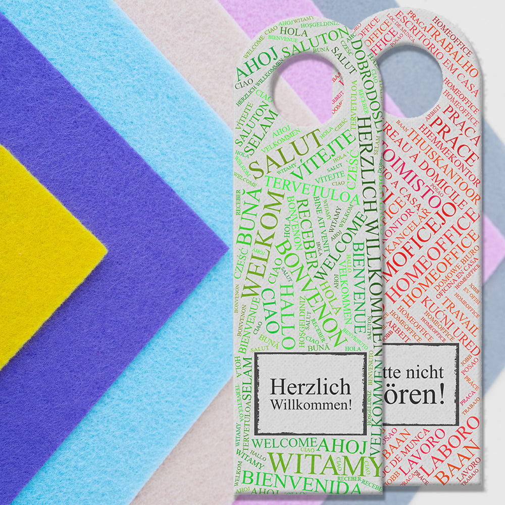 - Einzeln erhältlich oder als 3er- und 10er-Sparset. Aus hochwertigem Filz mit praktischem Loch für die Türklinke. Mit Sorgfalt in Handarbeit hergestellt in unserer Türhänger-Manufaktur in Deutschland.