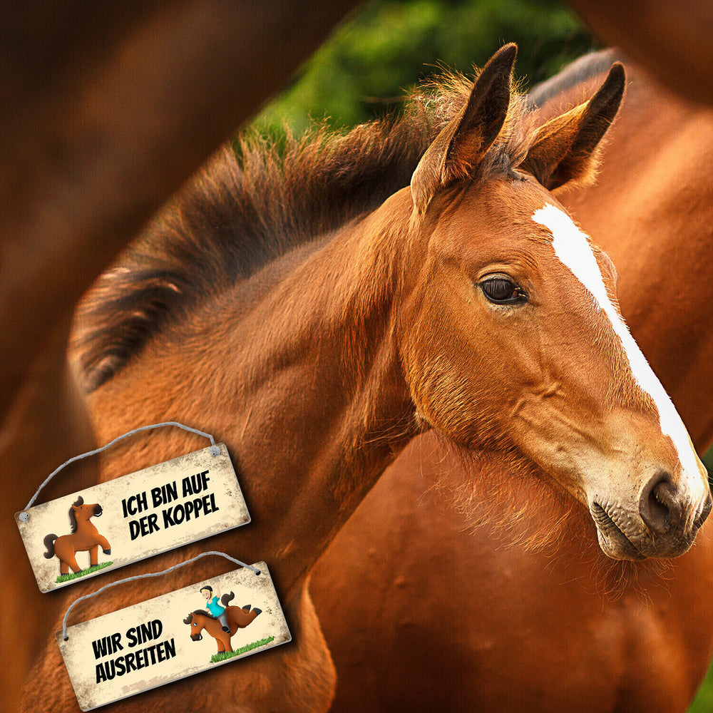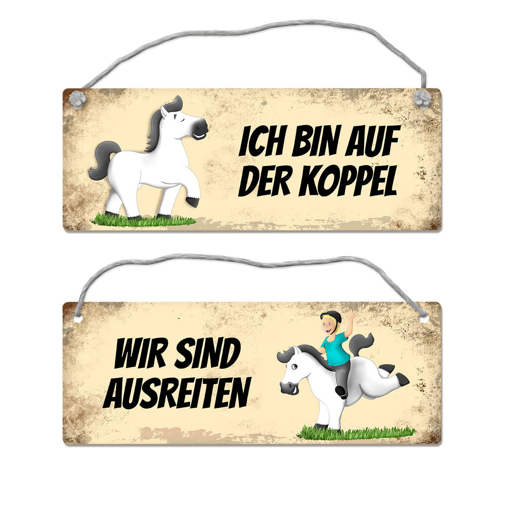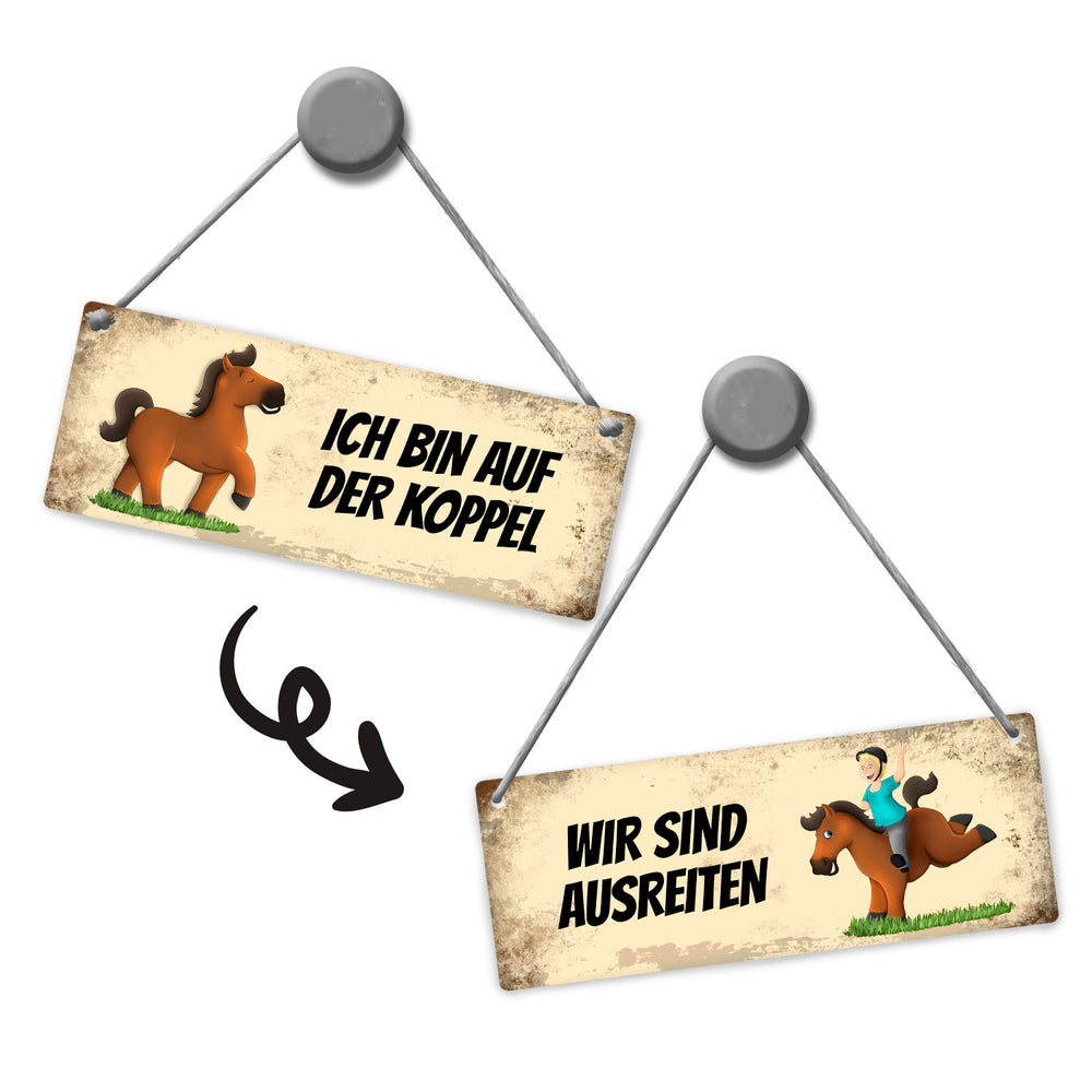 - Lieferumfang: 1x Braunes Pferd ist auf der Koppel oder ausreiten Wendeschild mit Kordel Wendeschild