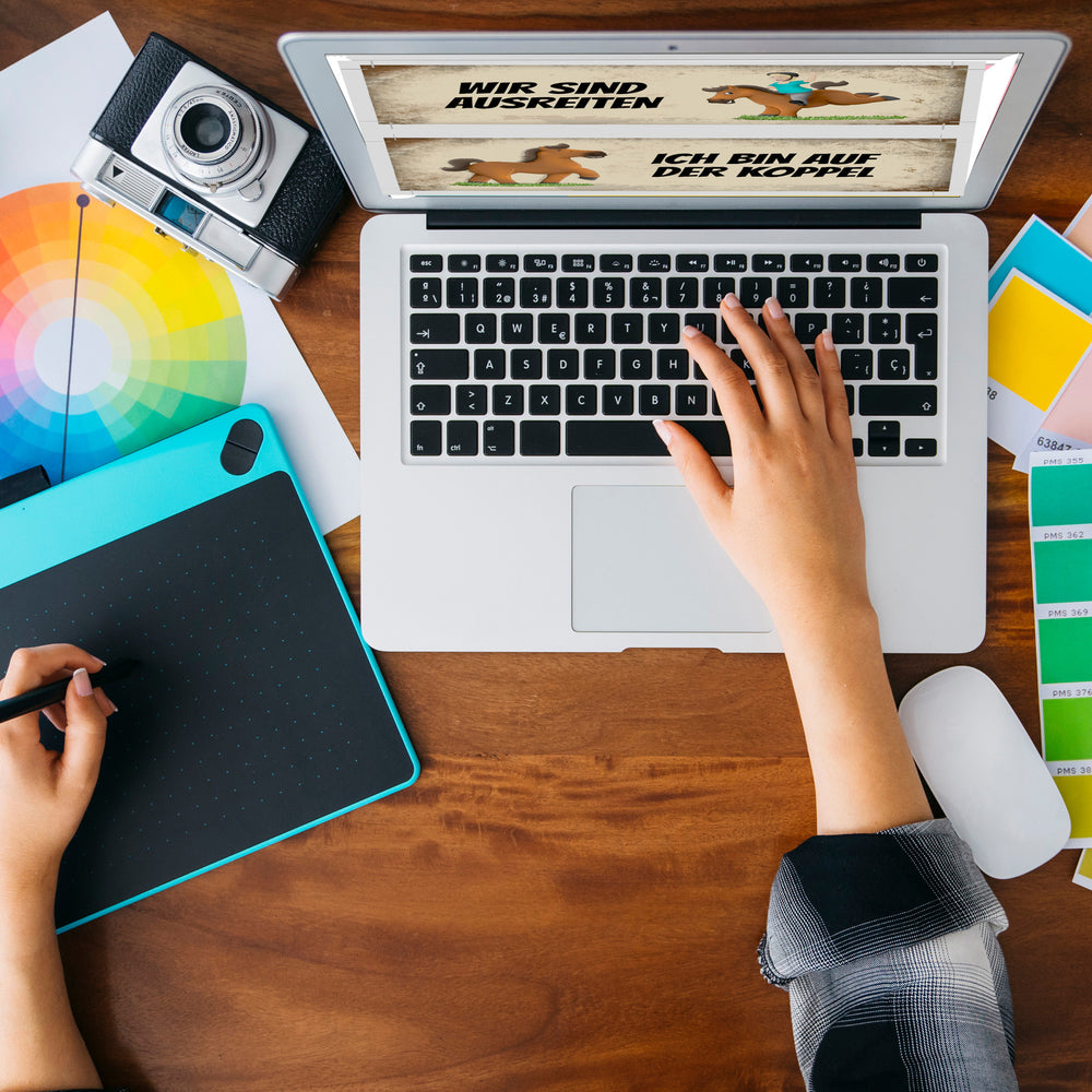 - Vorderseite: Wir sind ausreiten - Rückseite: Ich bin auf der Koppel