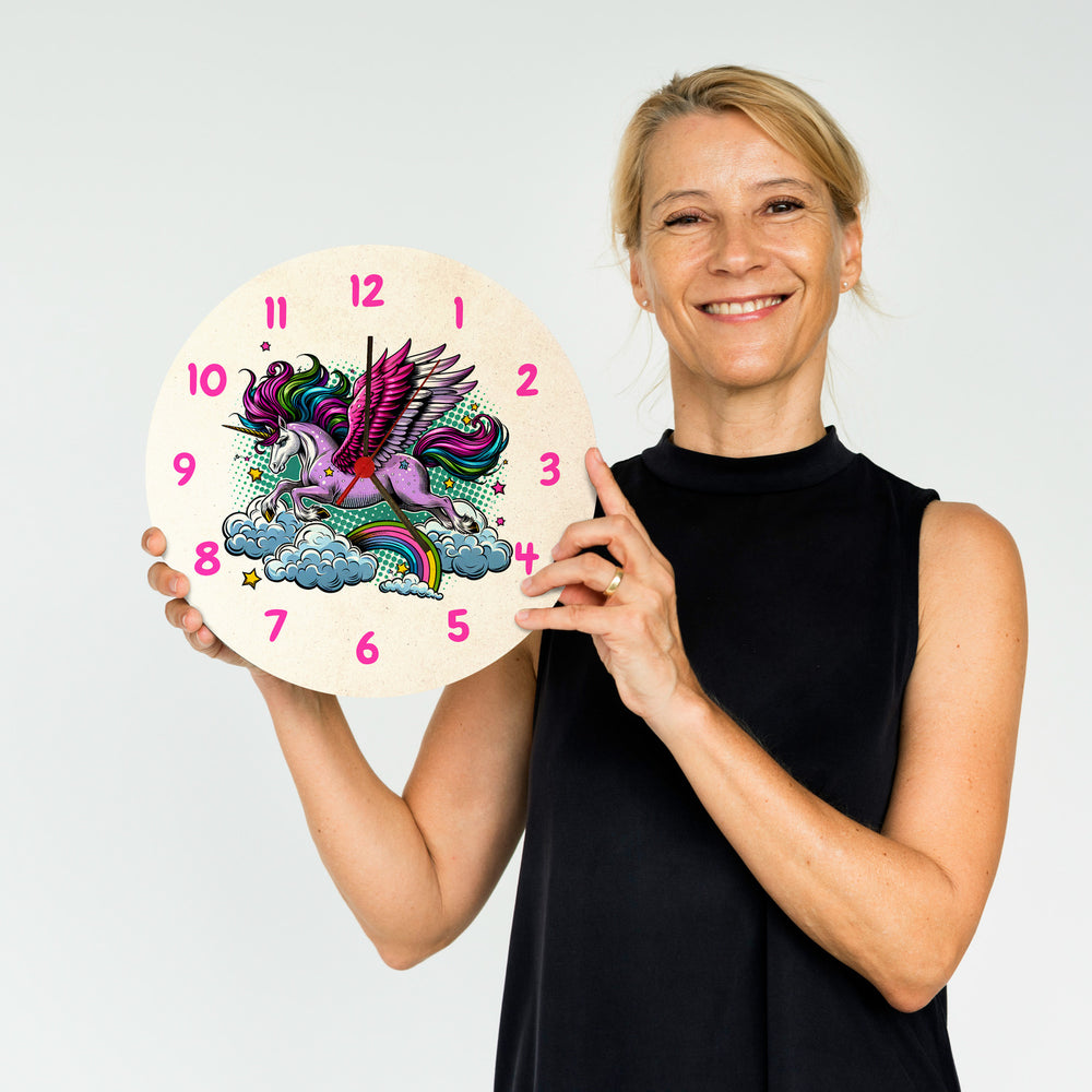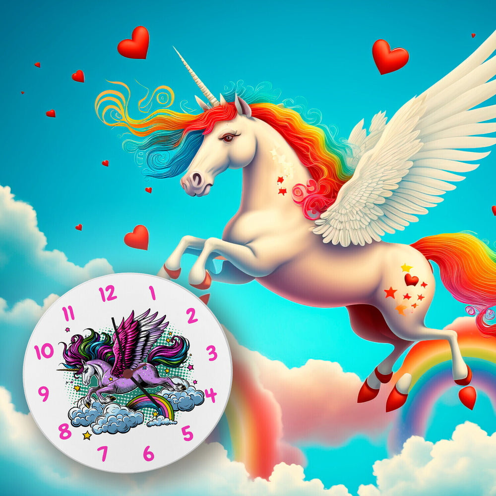- Tick-tock, es ist Magie o'clock! Unsere Einhorn-Wanduhr bringt mit ihrer bunten Mähne und dem prächtigen Flügelschlag direkt Narnia in dein Zimmer. Wer braucht schon Schokolade, wenn die Zeit so süß vergehen kann?