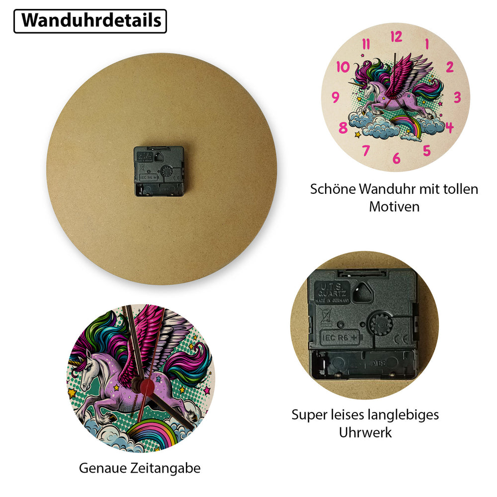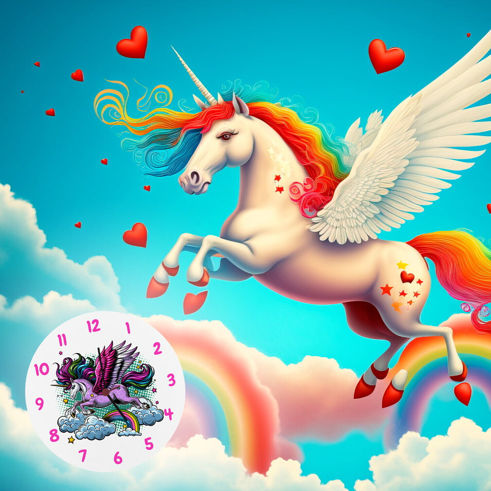 - 1x Einhorn mit bunter Mähne Wanduhr in der gewählten Variante