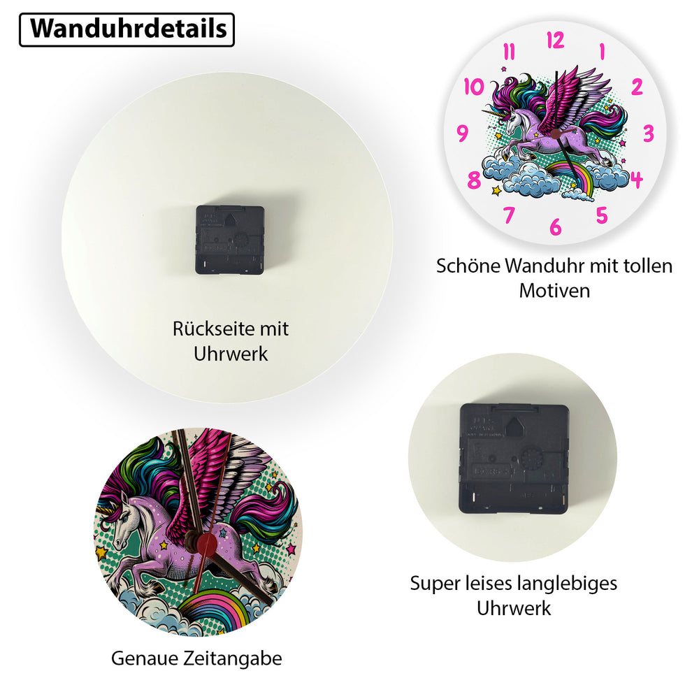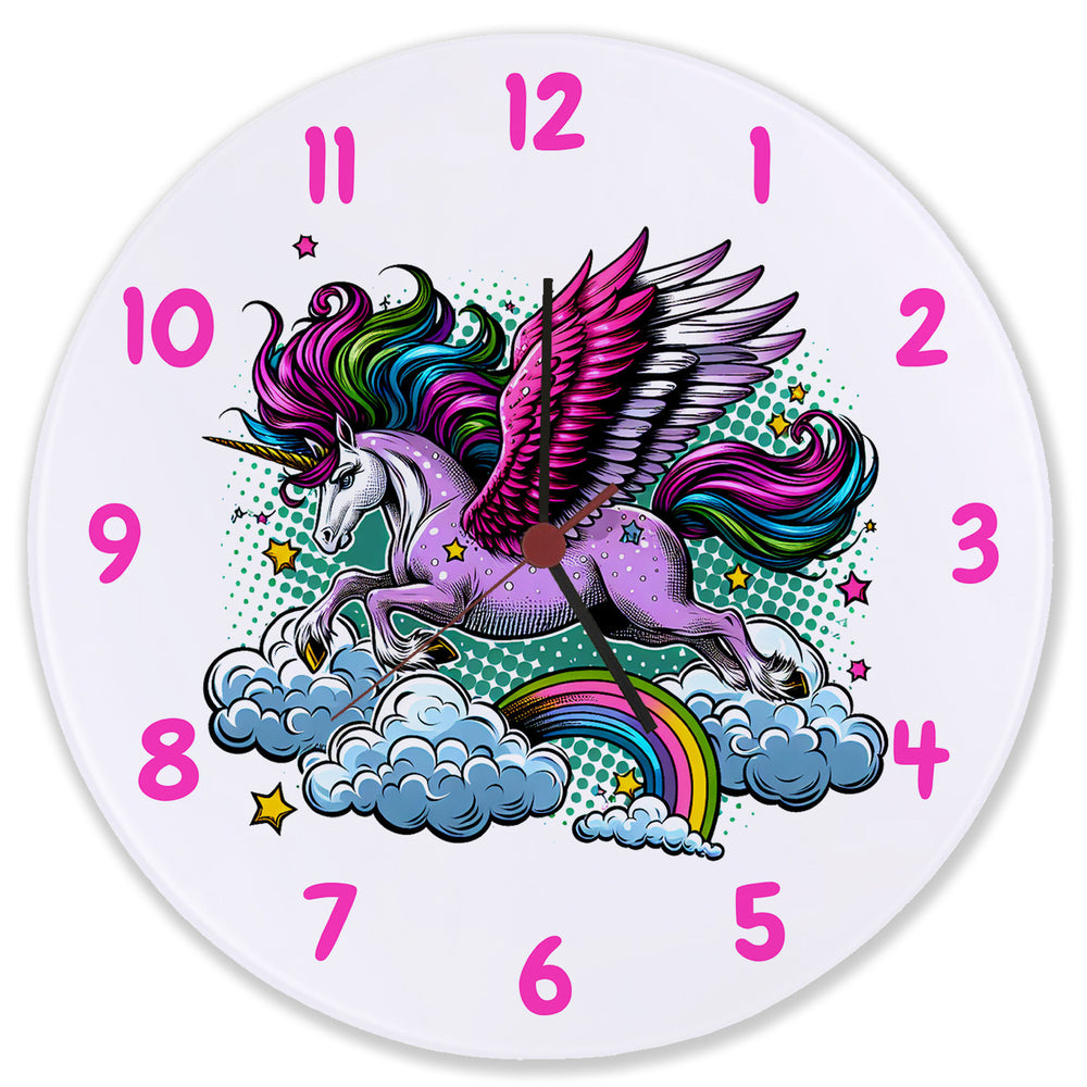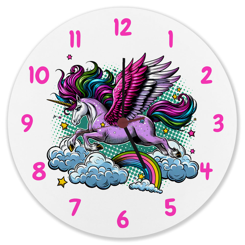 Einhorn mit Regenbogen Mädchen Wanduhr