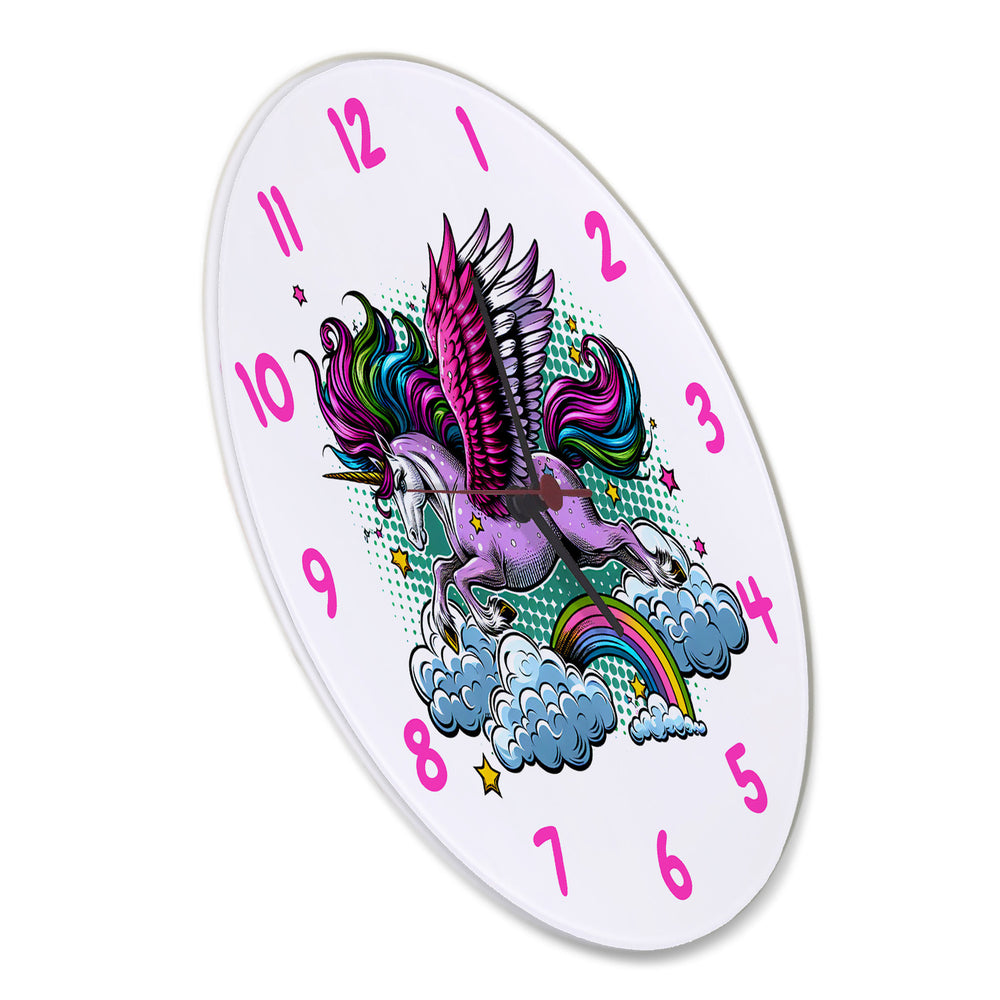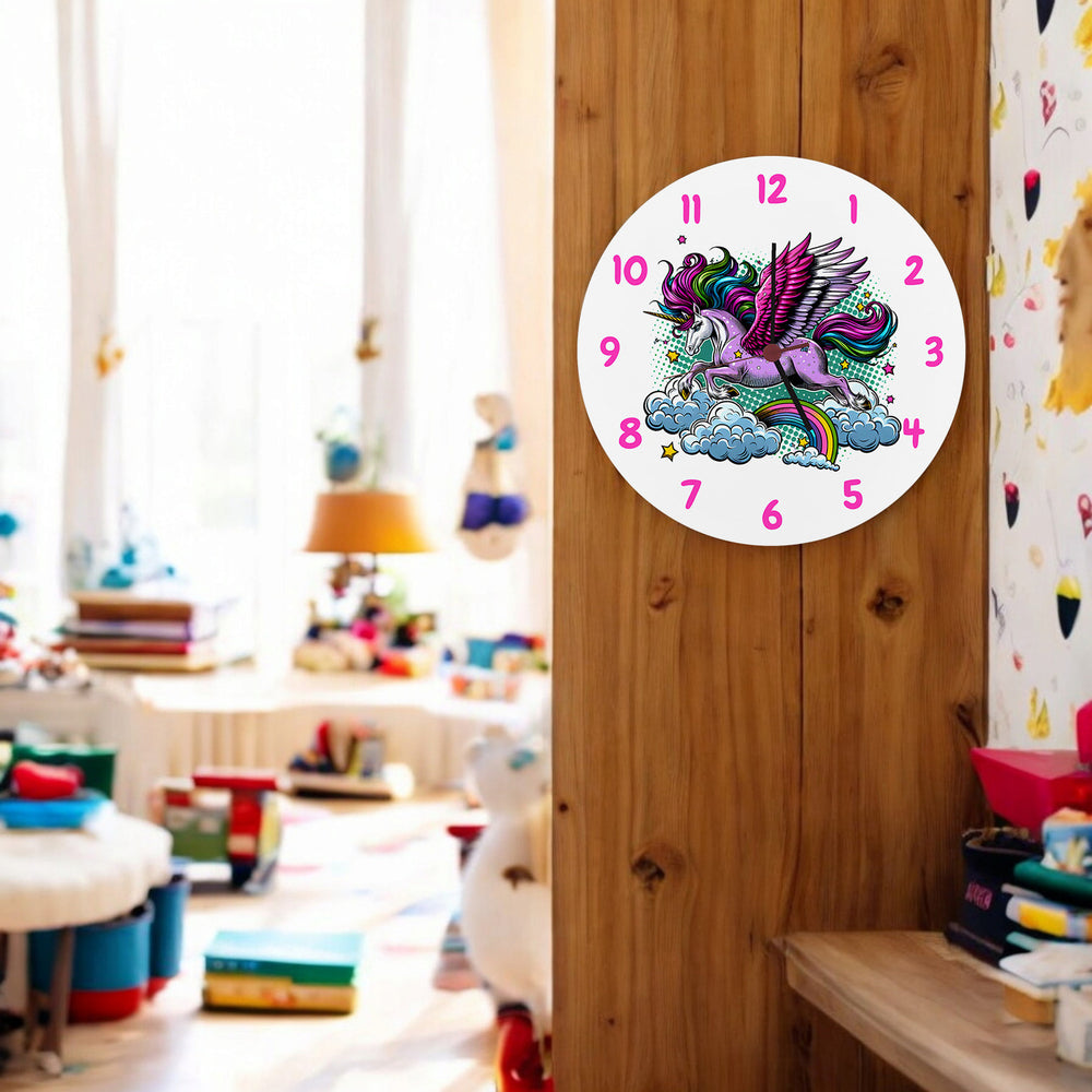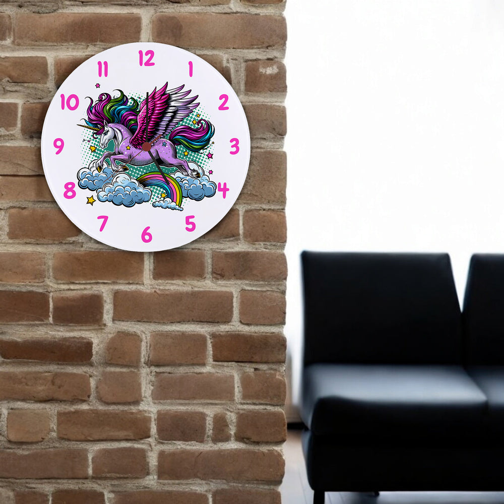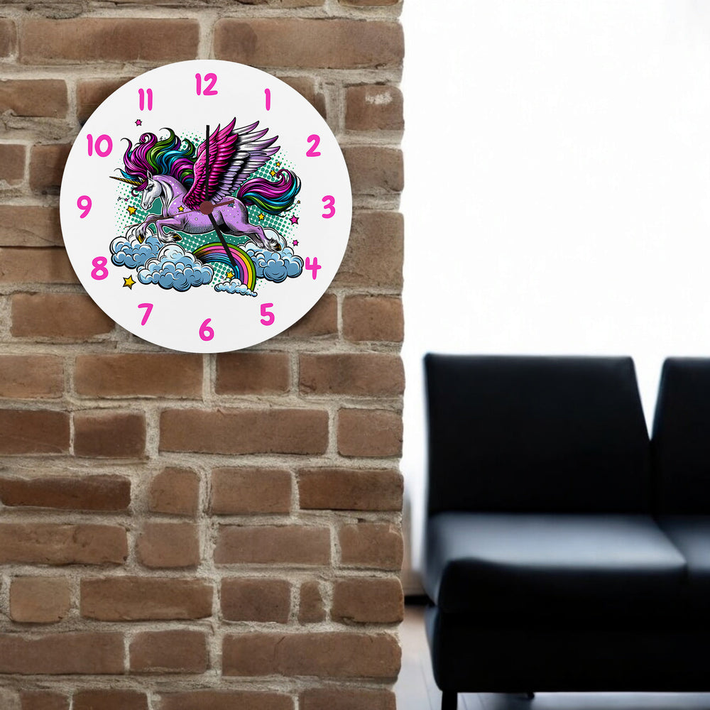 Einhorn mit Regenbogen Mädchen Wanduhr