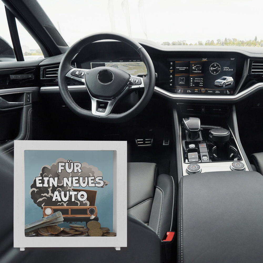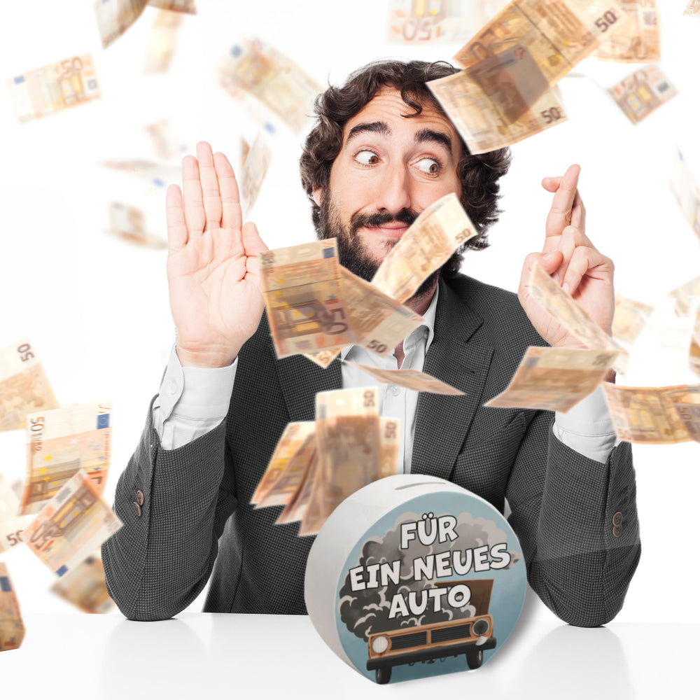 - 1x Für ein neues Auto Spardose mit lustigem Motiv in der gewählten Ausführung