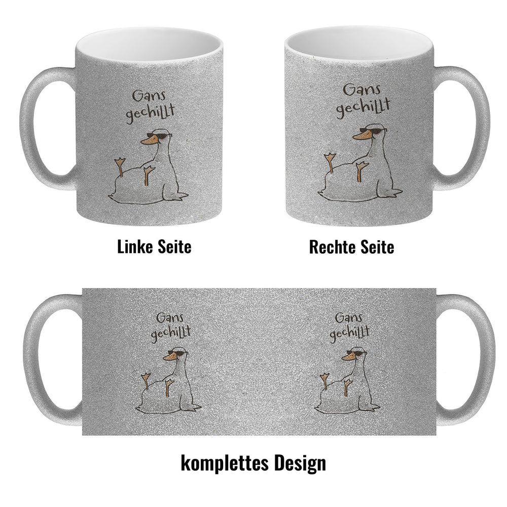 - 1x Gilbert die Gans Kaffeebecher mit Spruch Gans gechillt in der gewählten Ausführung