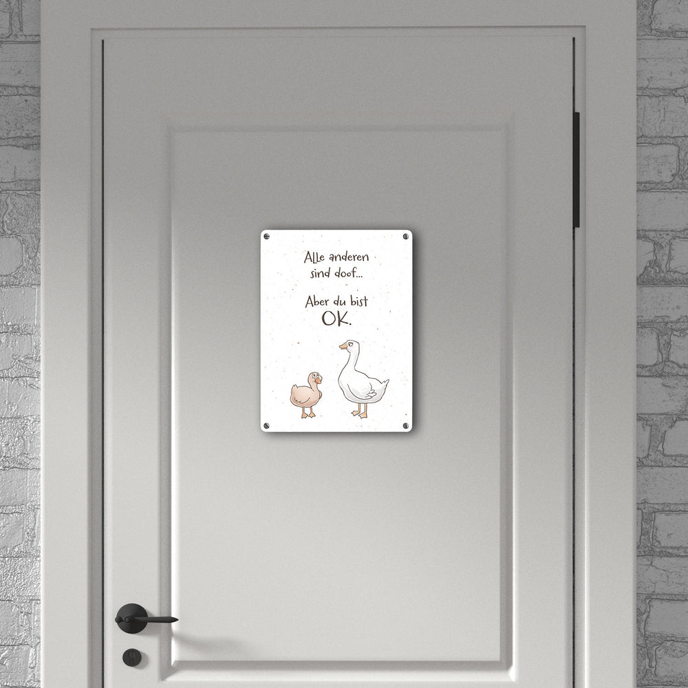 - 1x Gilbert die Gans Metallschild in 15x20 cm mit Spruch Alle sind doof Aber du bist ok in der gewählten Größe