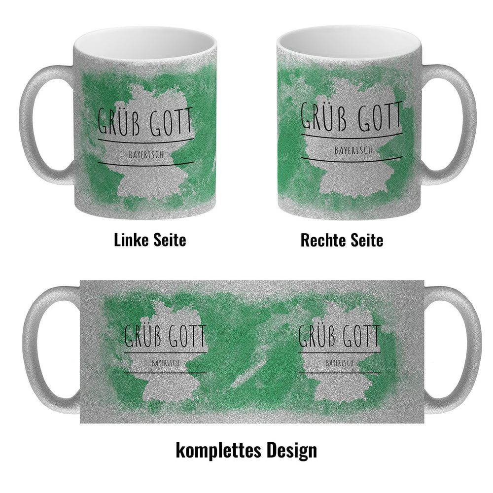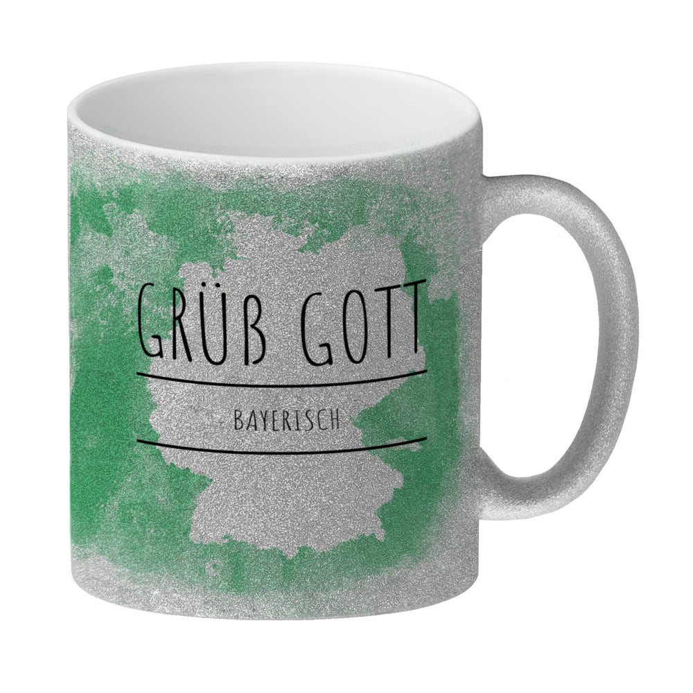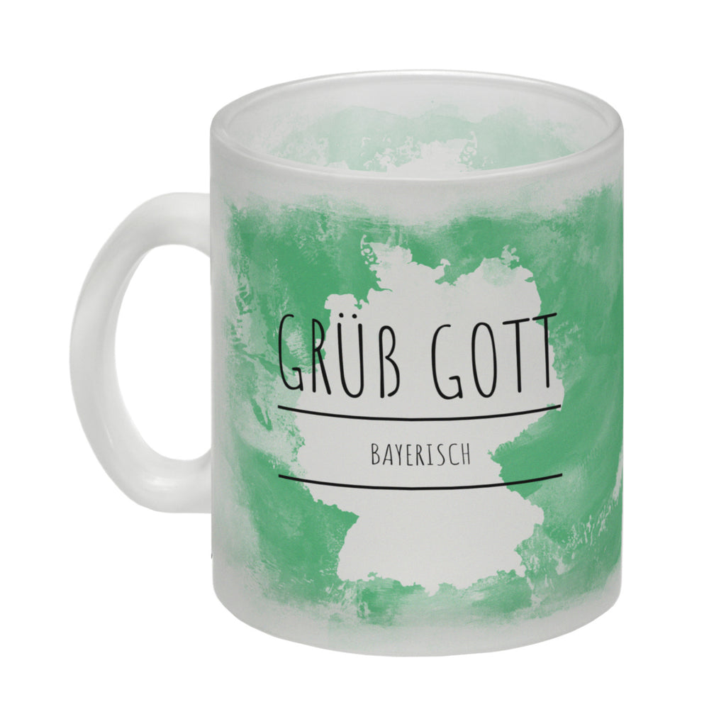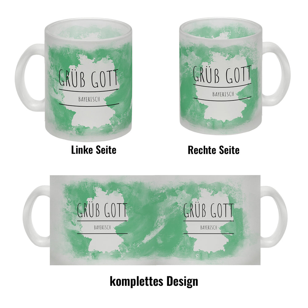 - 1x Hallo auf Bayerisch Grüß Gott lustiger Kaffeebecher mit grünem Hintergrund in der gewählten Ausführung
