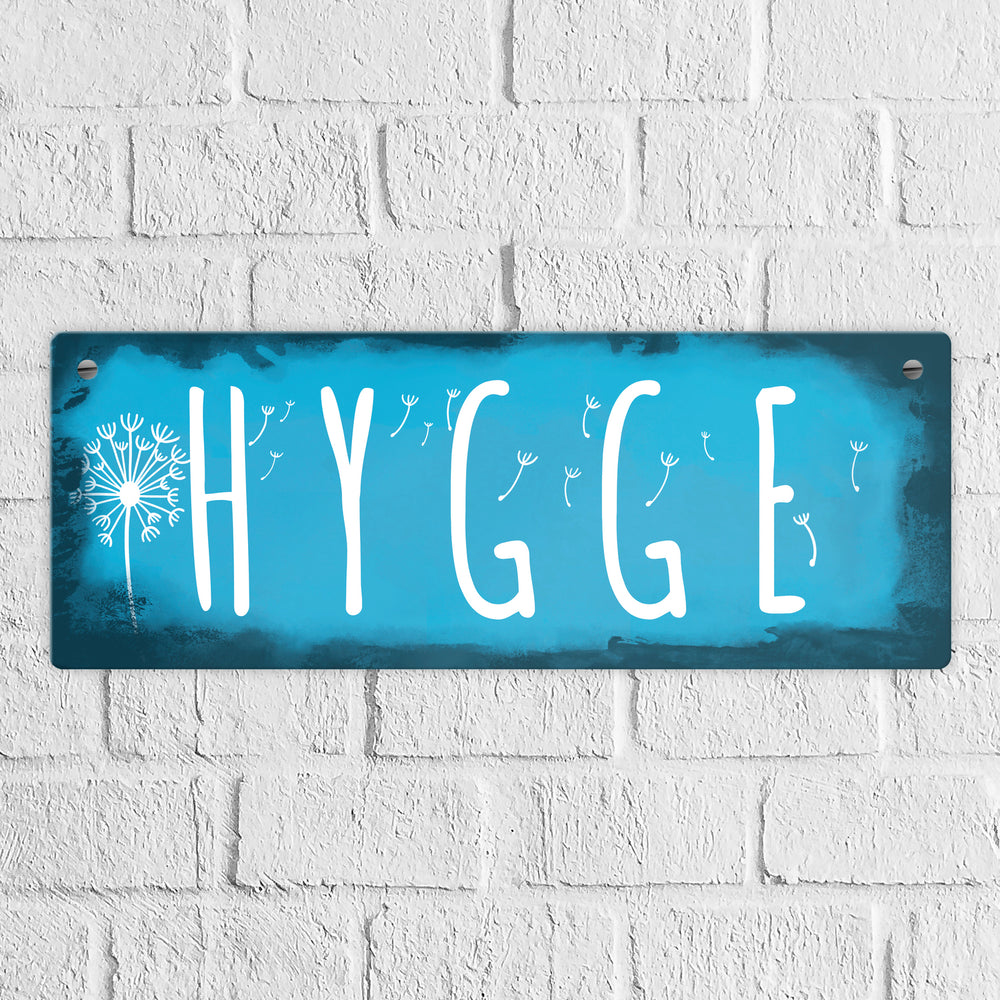 - 1x Hygge für eine gemütliche und herzliche Atmosphäre Metallschild in der gewählten Größe