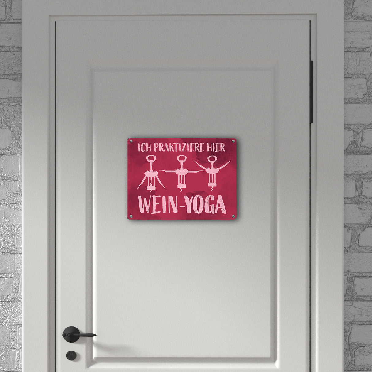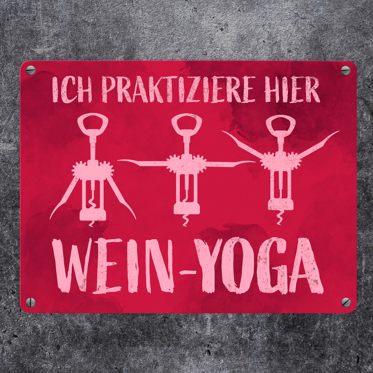 - 1x Ich praktiziere hier Wein-Yoga - Metallschild mit Yoga-Korkenziehern in der gewählten Größe