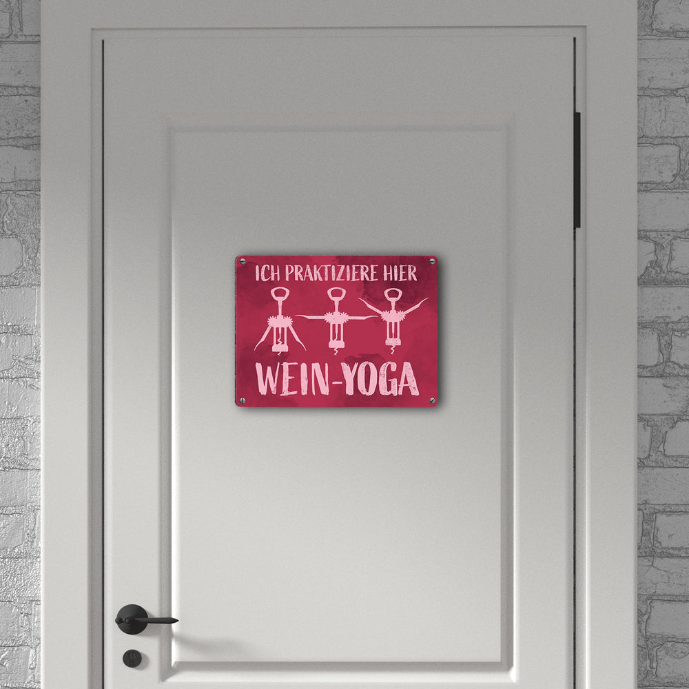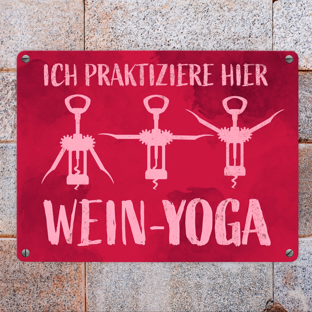- Yoga war gestern. Wein-Yoga ist jetzt angesagt! Mit diesem Metallschild kannst du deiner sportlichen Leidenschaft Ausdruck verleihen.