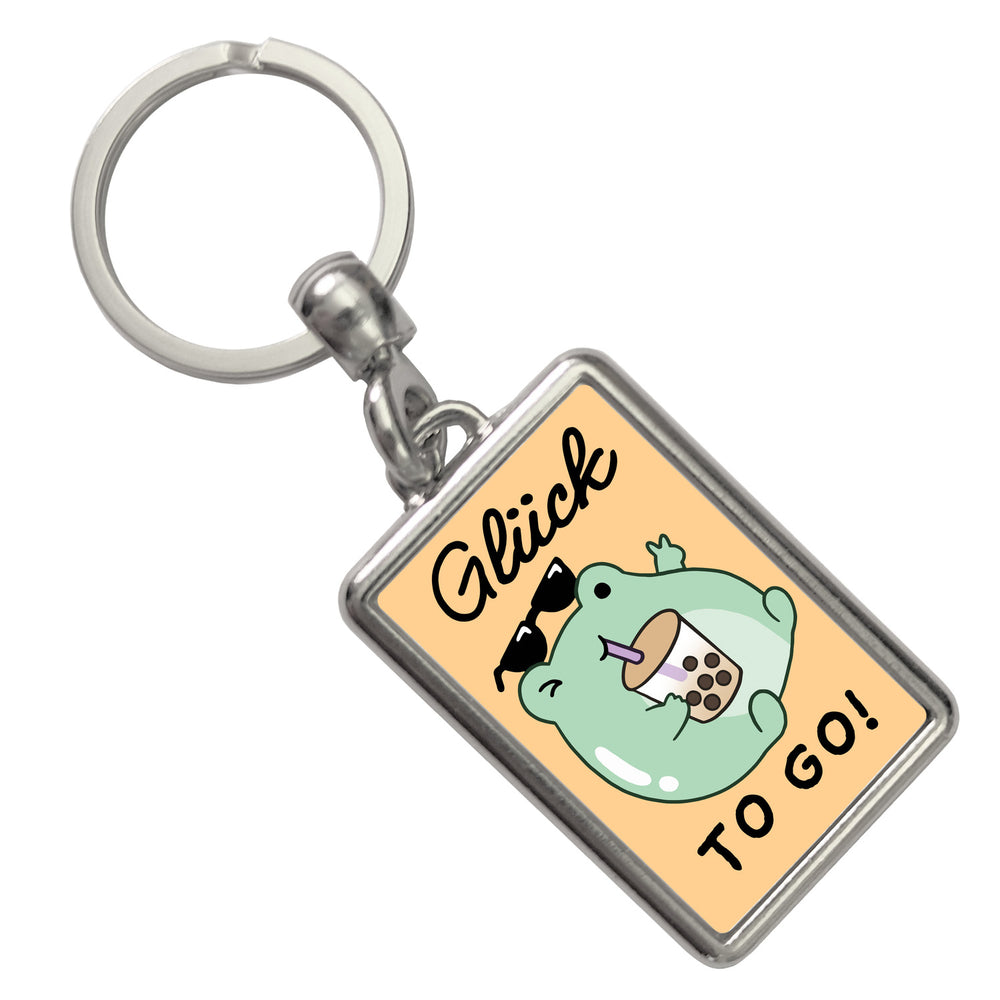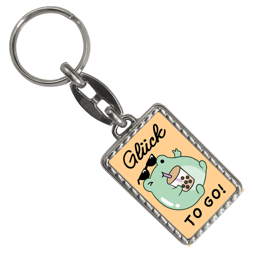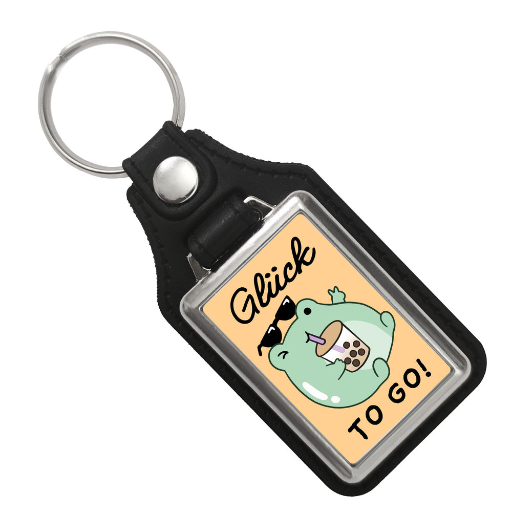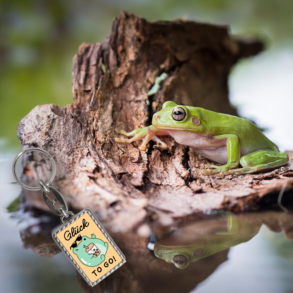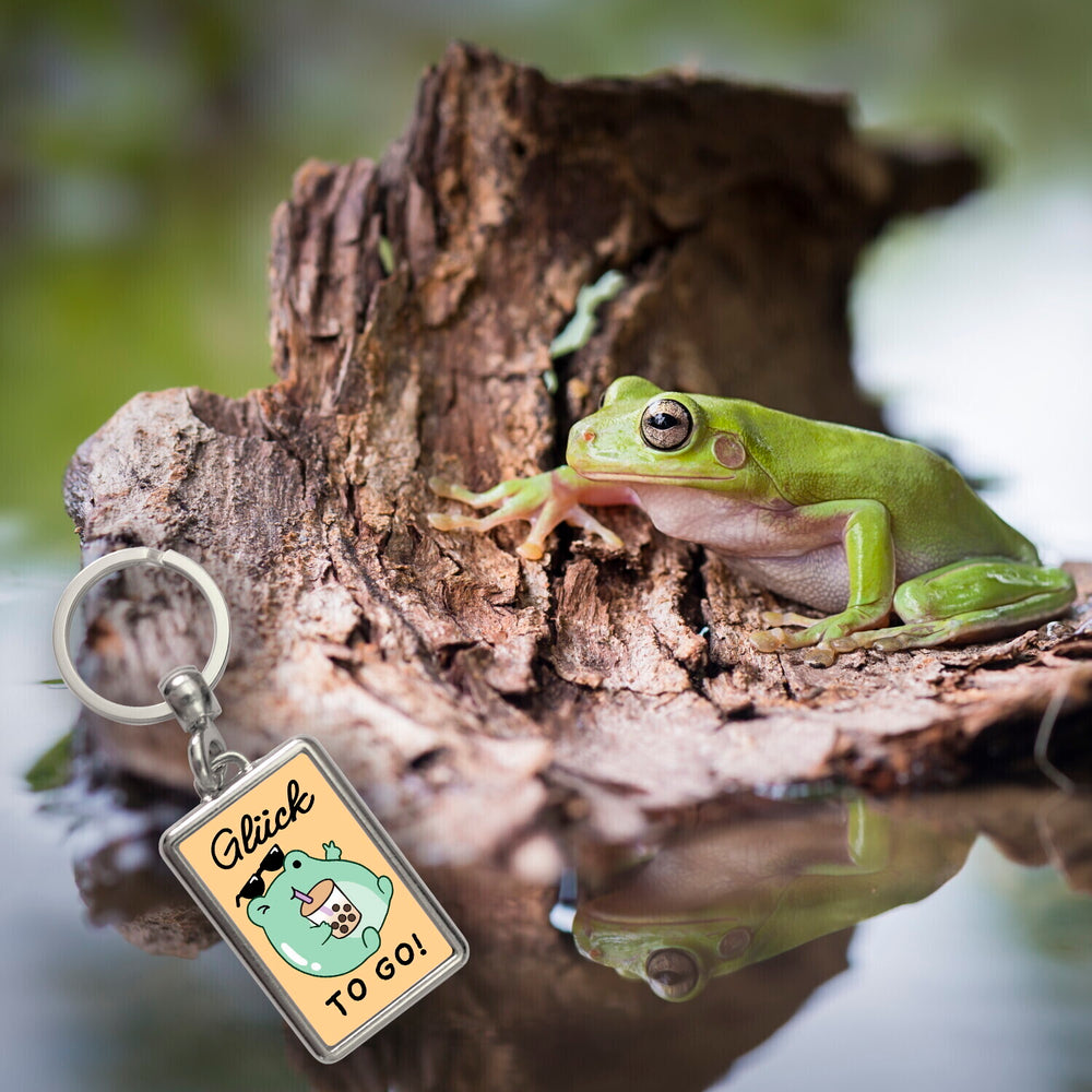 - 1x Jelly & Friends Frosch mit Bubbletea Schlüsselanhänger mit Spruch Glück To Go in der gewählten Ausführung
