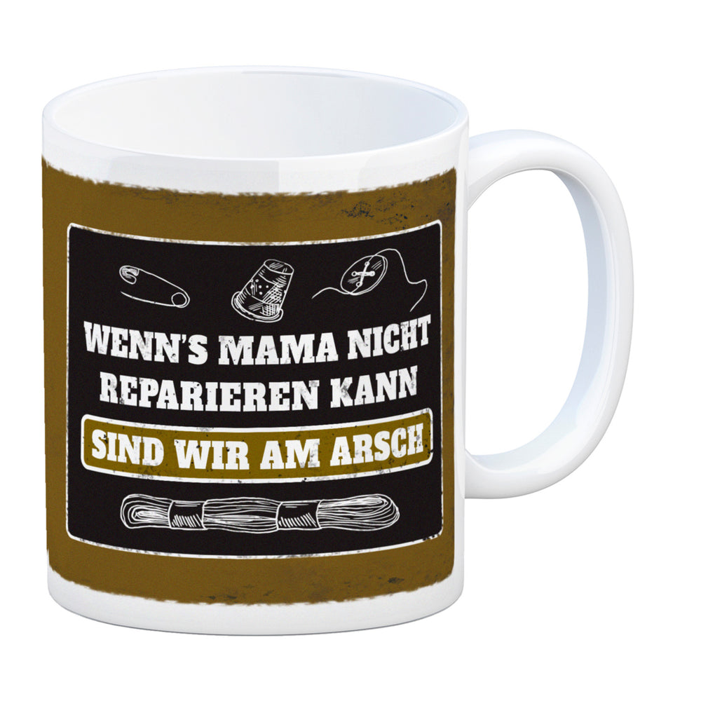 • Lieferumfang: 1x Kaffeebecher mit Spruch: Wenn Mama es nicht reparieren ...