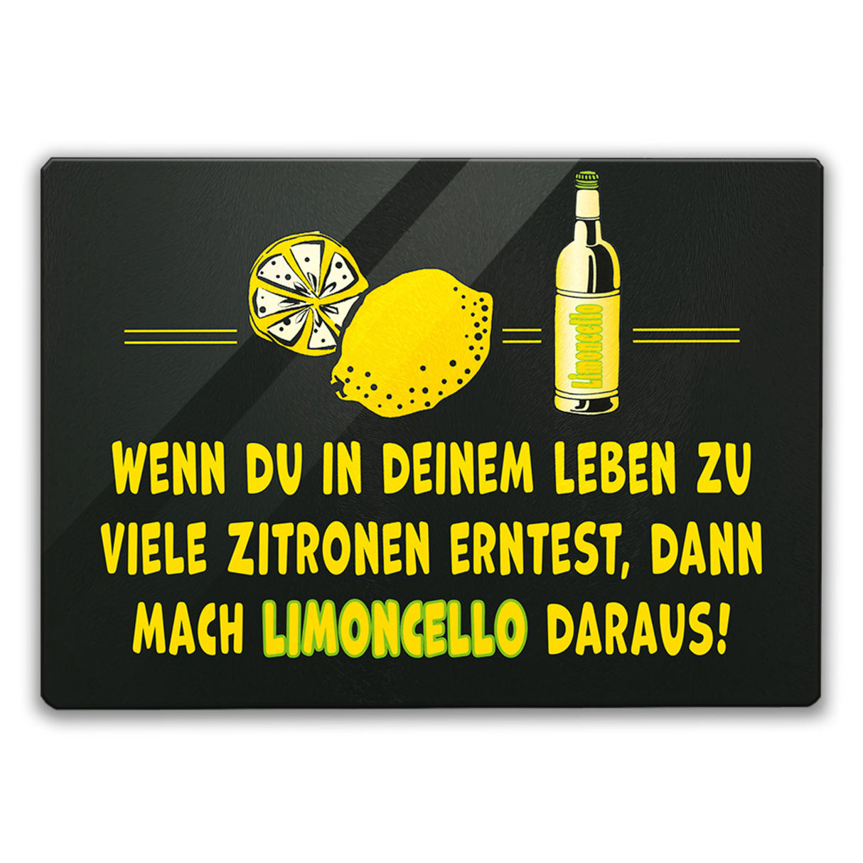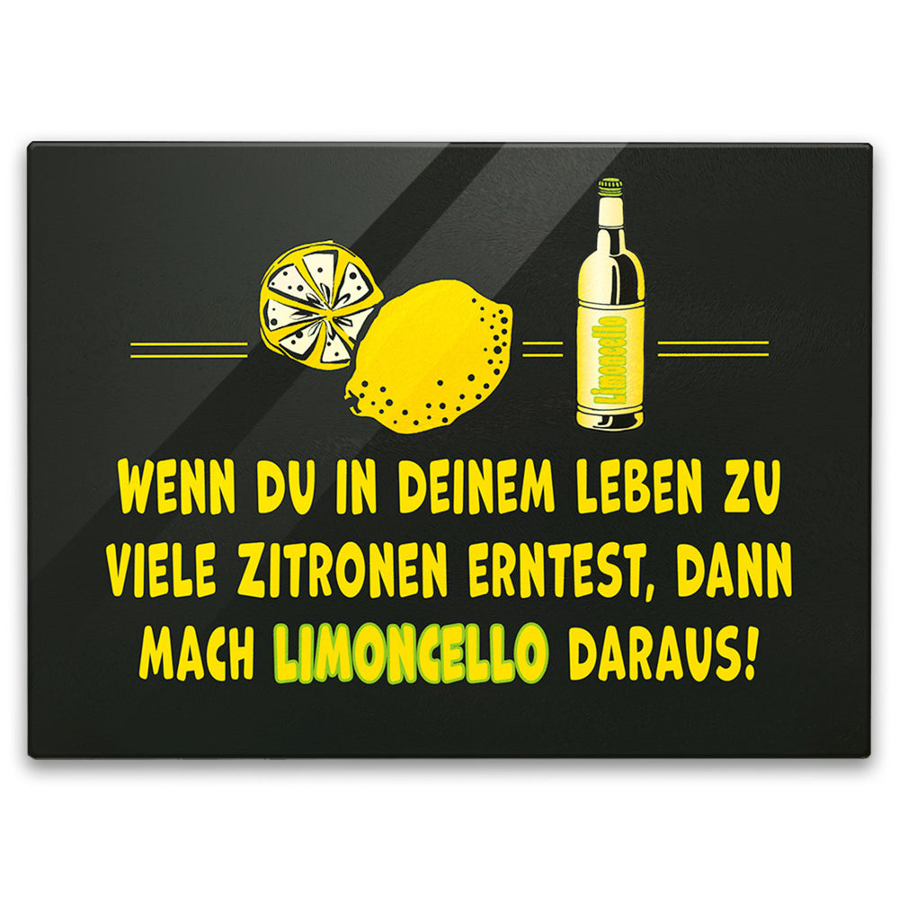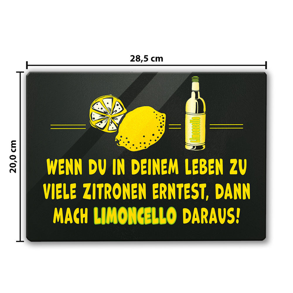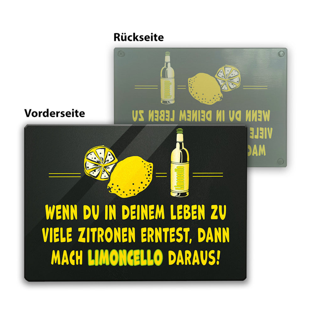 Limoncello Schneidebrett aus Glas aus Glas mit Spruch Mach Limoncello aus Zitronen