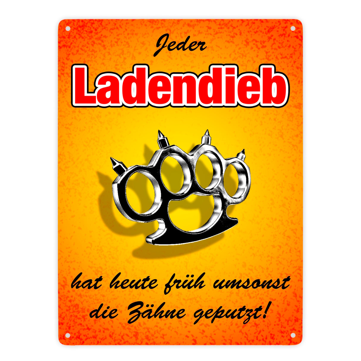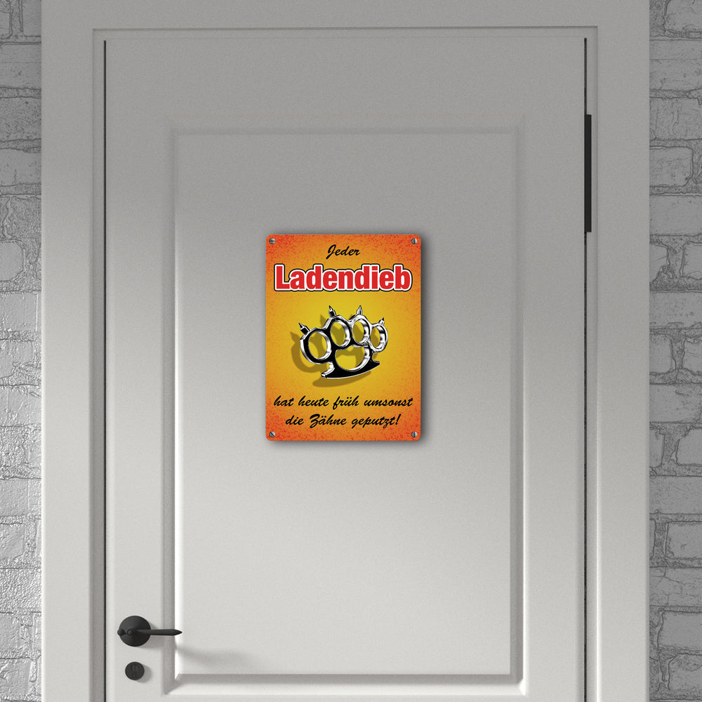 Metallschild Abschreckung für Ladendiebe mit Schlagring Symbol
