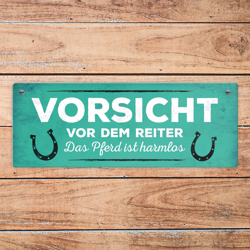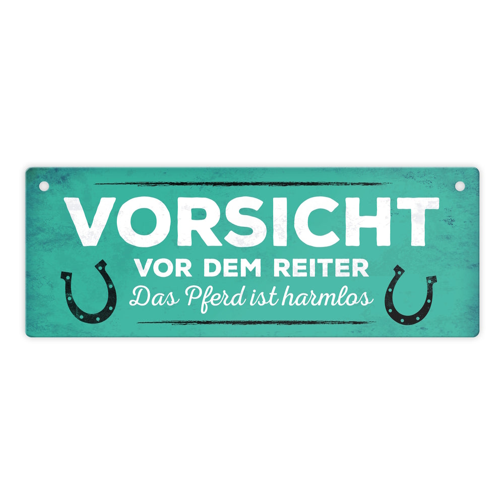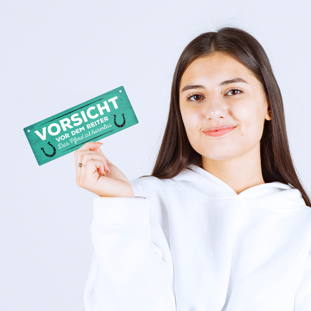 - 1x Metallschild mit Spruch: Vorsicht vor dem Reiter, das Pferd ... in der gewählten Größe