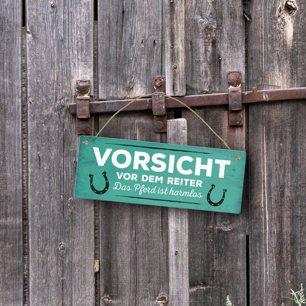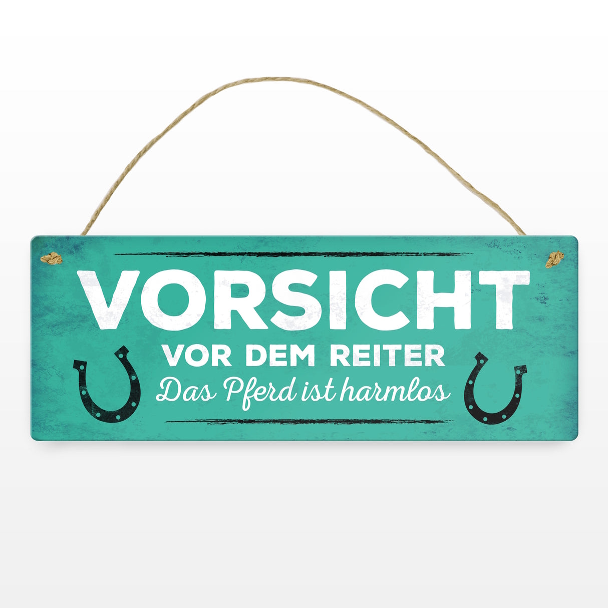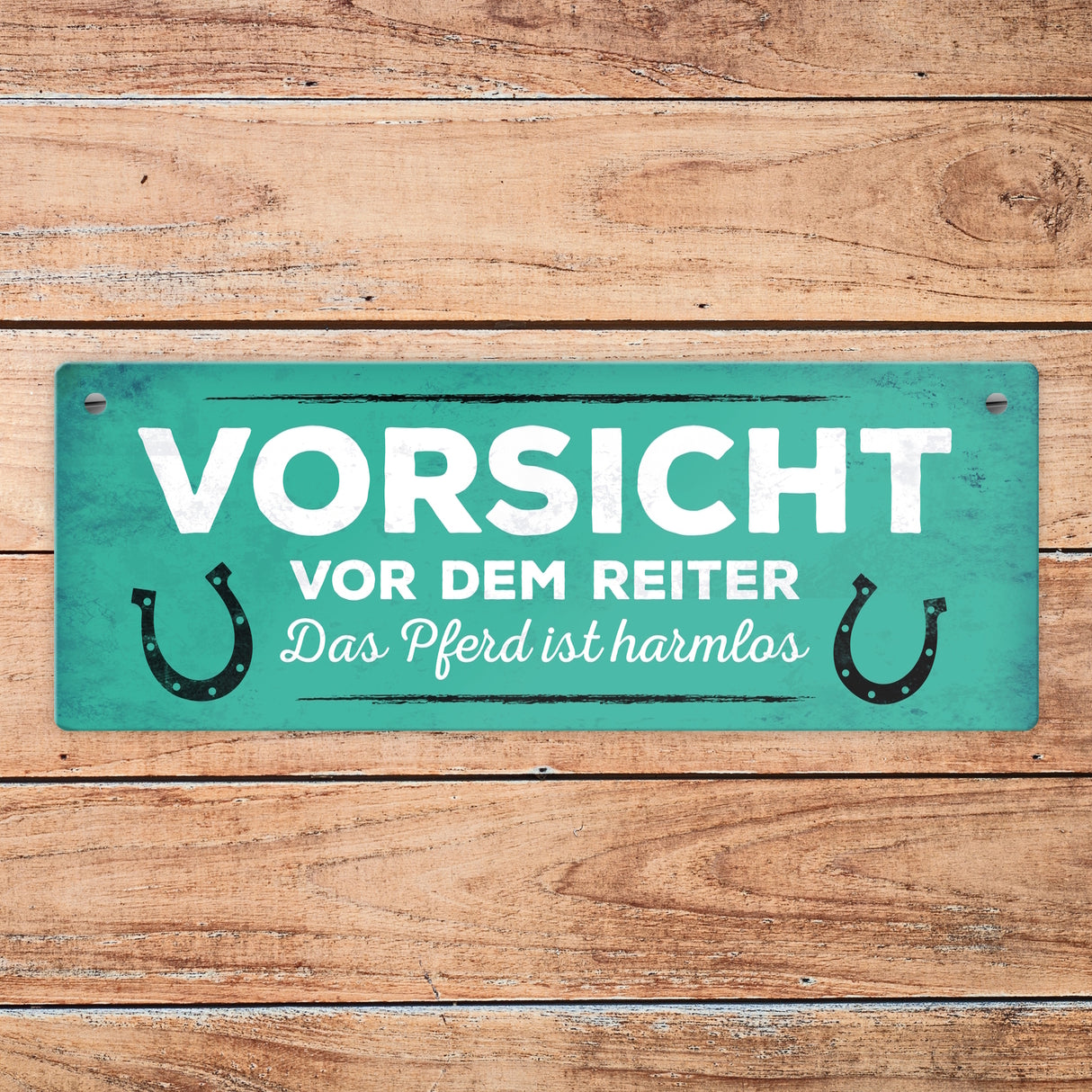 - 1x Metallschild mit Spruch: Vorsicht vor dem Reiter, das Pferd ... in der gewählten Größe