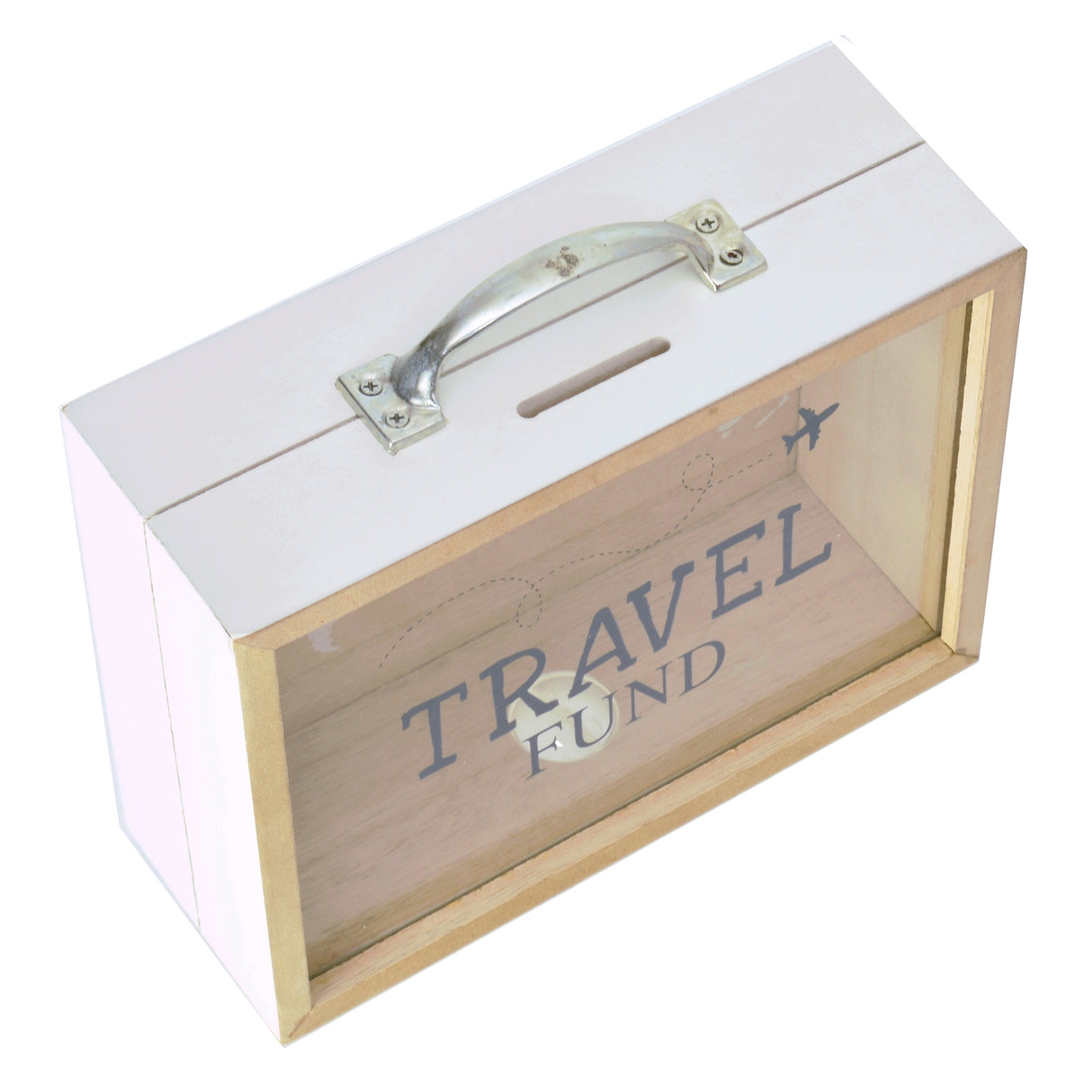 Die Travel Fund Spardose hilft beim Sparen für den nächsten Urlaub oder die Weltreise. Material: Holz,Glas