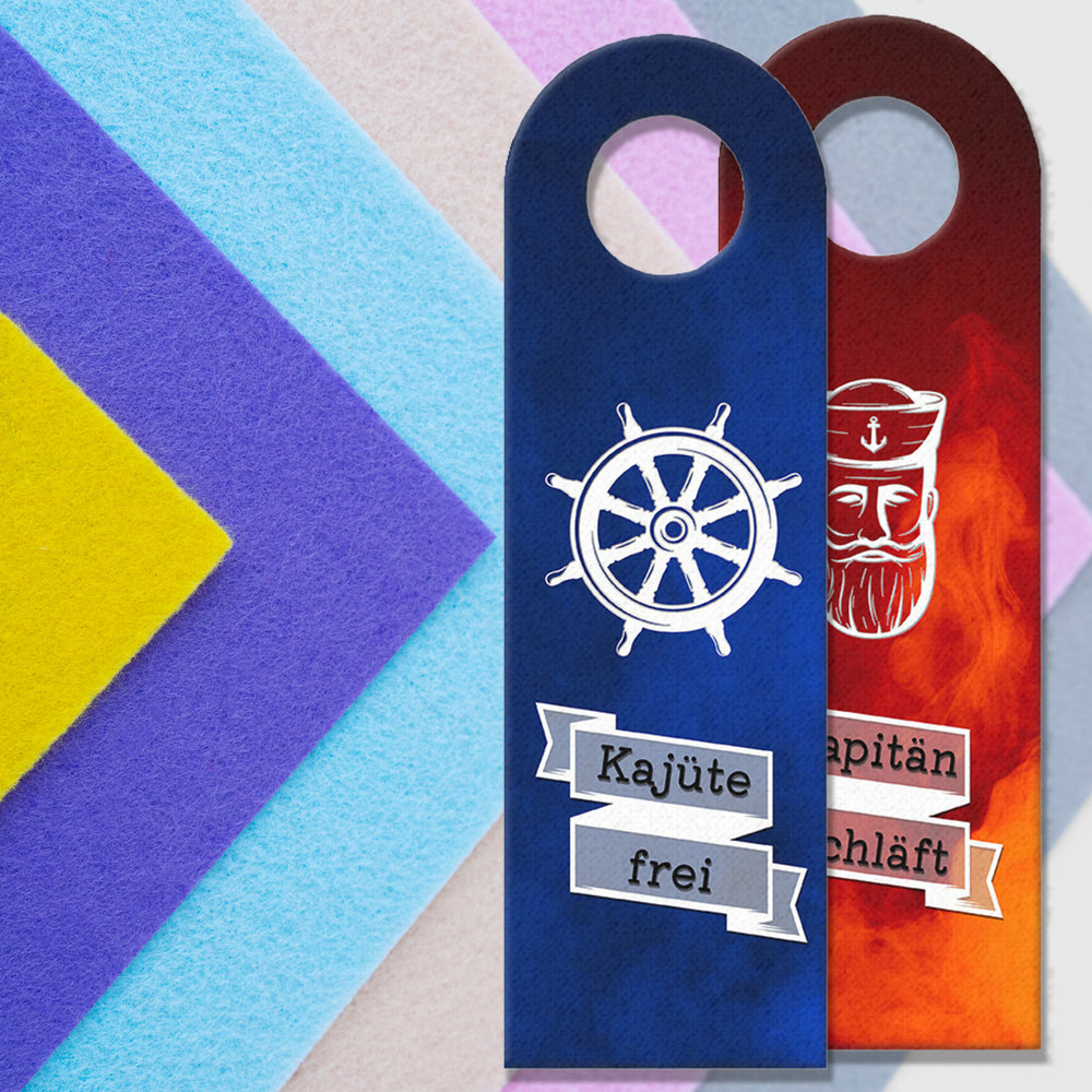 - Einzeln erhältlich oder als 3er- und 10er-Sparset. Aus hochwertigem Filz mit praktischem Loch für die Türklinke. Mit Sorgfalt in Handarbeit hergestellt in unserer Türhänger-Manufaktur in Deutschland.