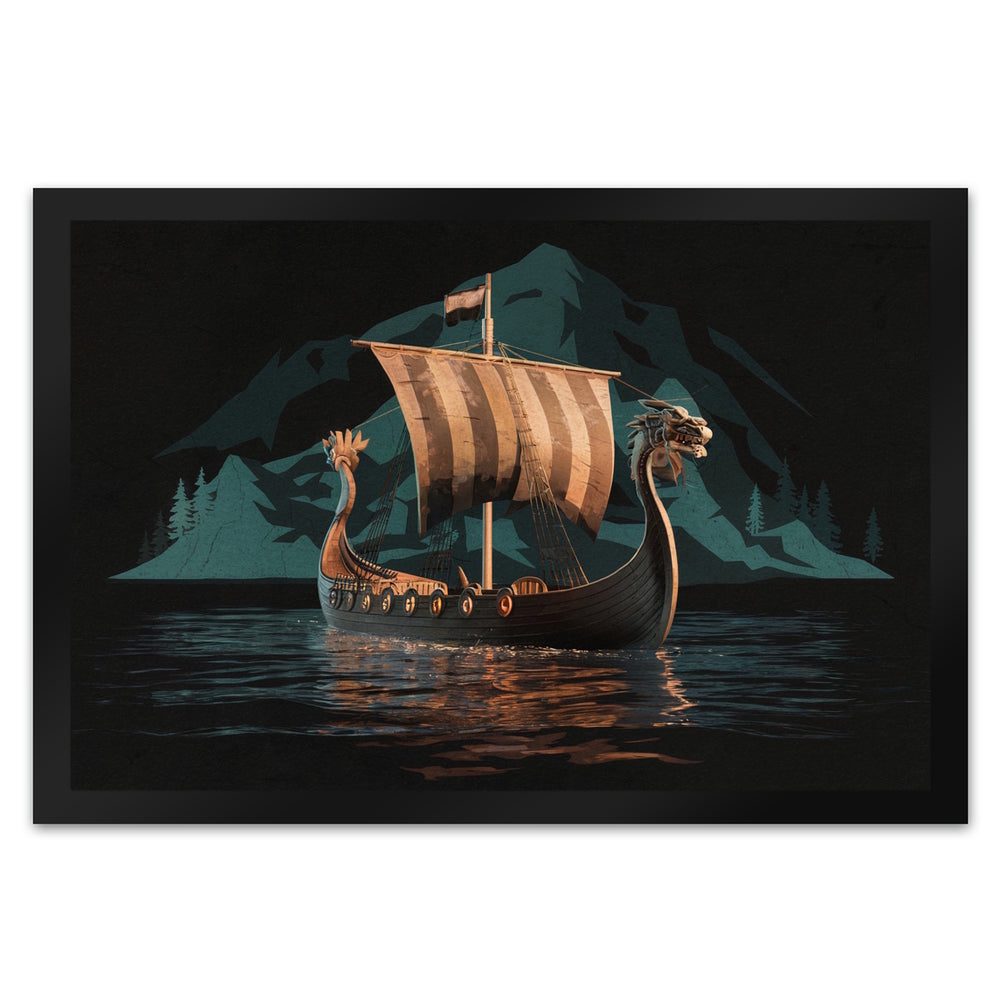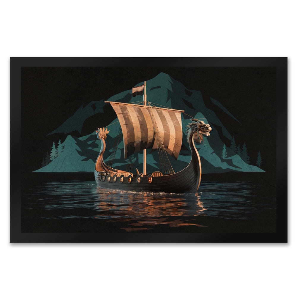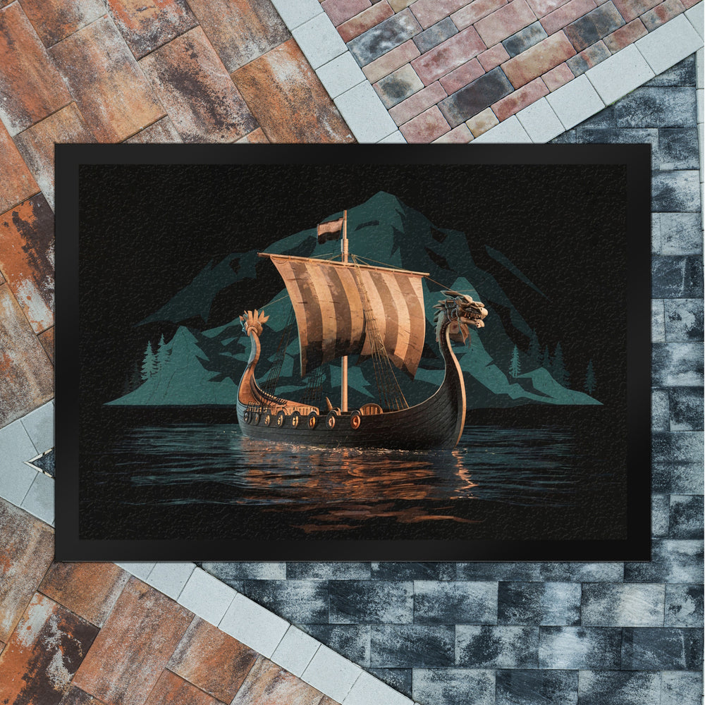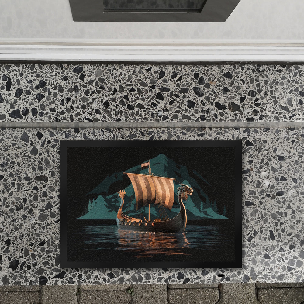 Wikingerschiff auf Wasser Fußmatte in 35x50 cm - Nordische Eleganz für Ihr Zuhause