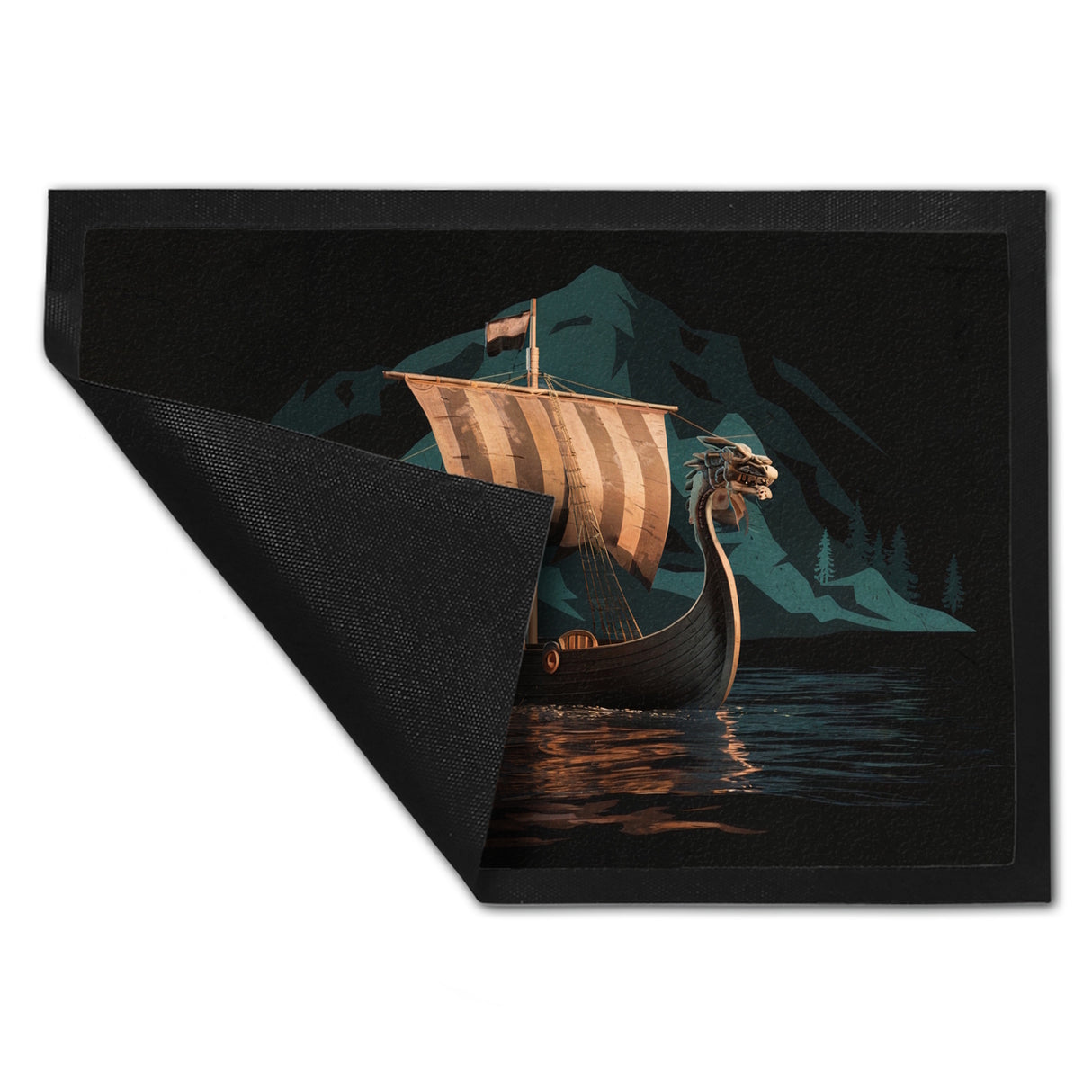 Wikingerschiff auf Wasser Fußmatte in 35x50 cm - Nordische Eleganz für Ihr Zuhause - 50x35 cm ist auf Lager und wird versandt, sobald es wieder verfügbar ist