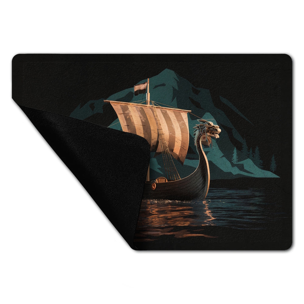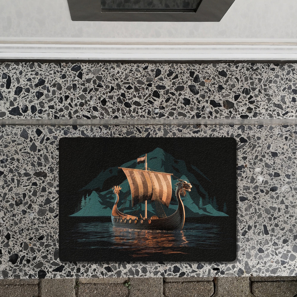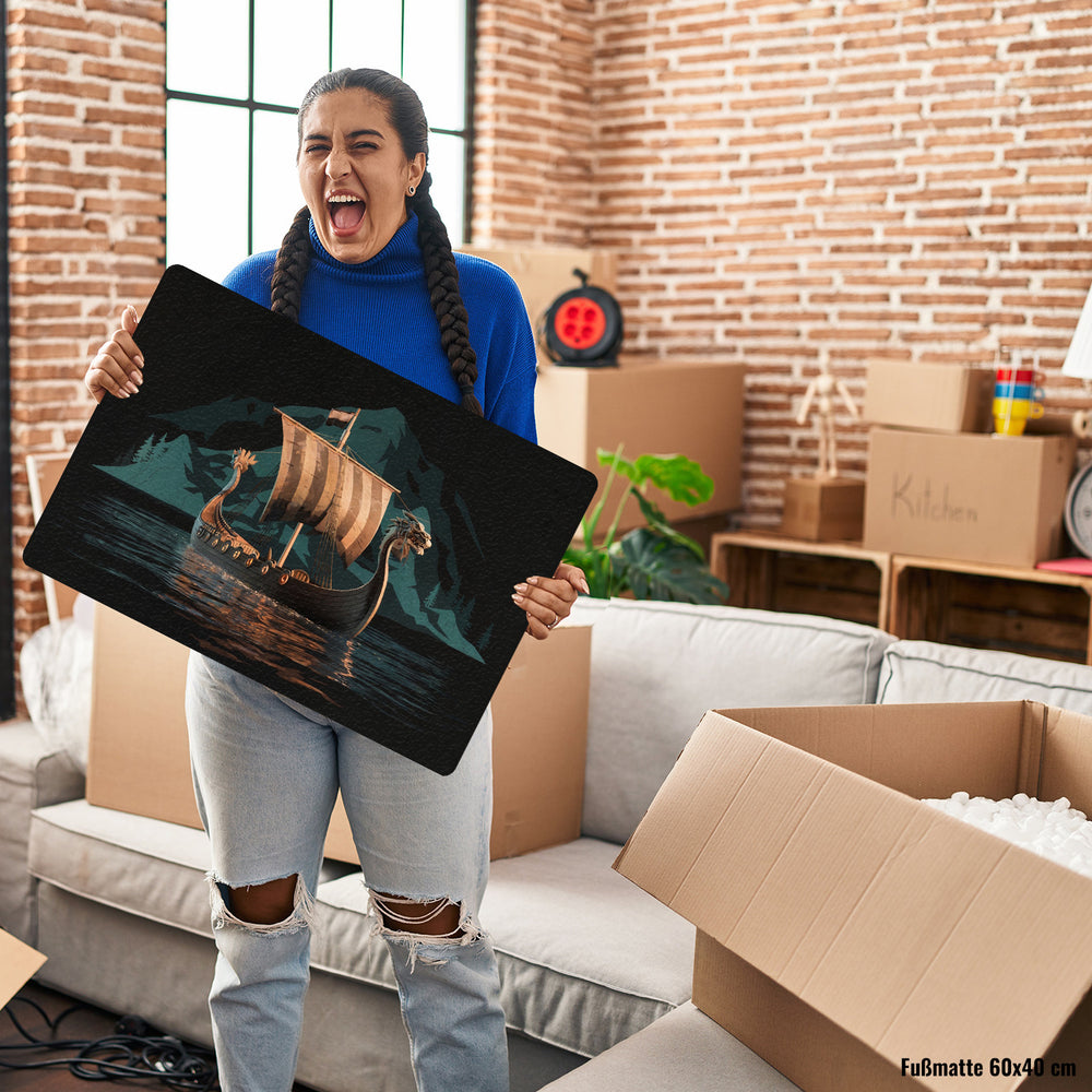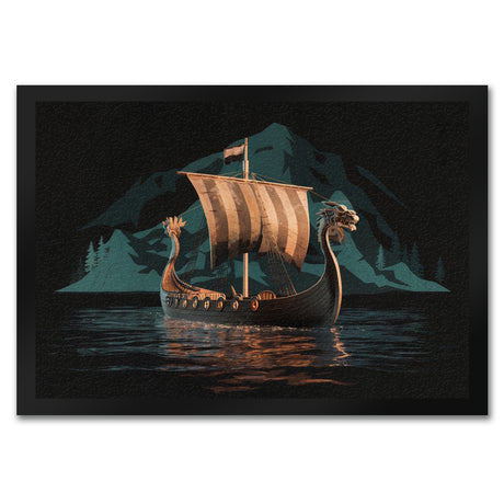 Wikingerschiff auf Wasser Fußmatte in 35x50 cm - Nordische Eleganz für Ihr Zuhause