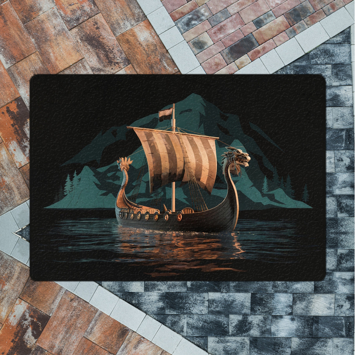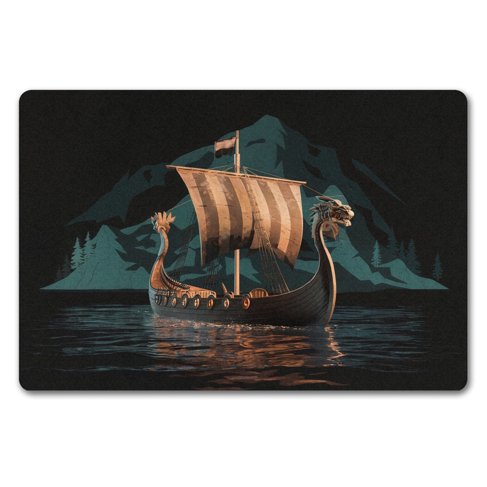 Wikingerschiff auf Wasser Fußmatte in 35x50 cm ohne Rand - Nordische Eleganz für Ihr Zuhause