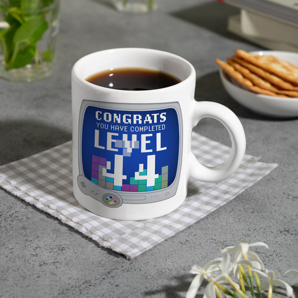 Witziger Kaffeebecher für den 44. Geburtstag mit Motiv: Gamer