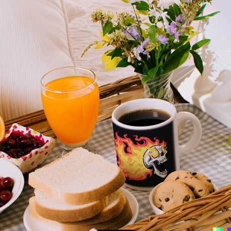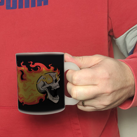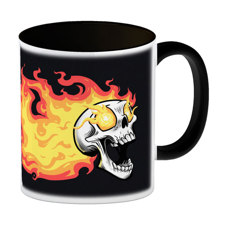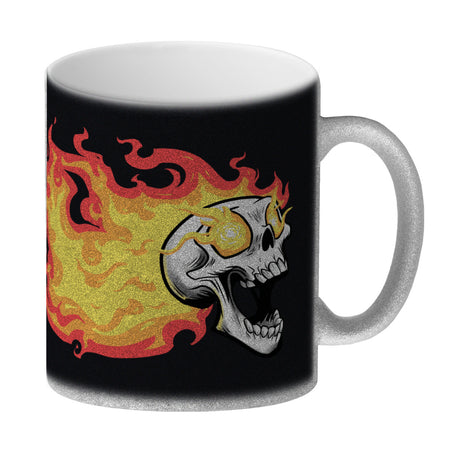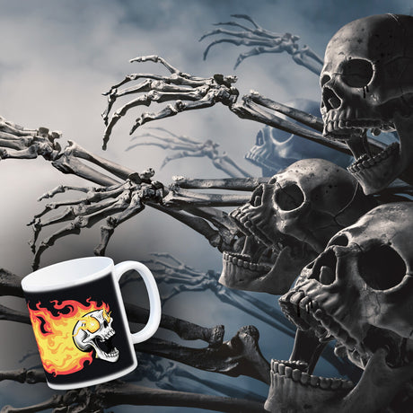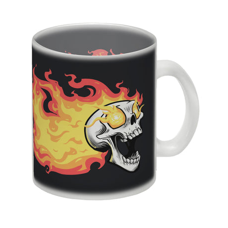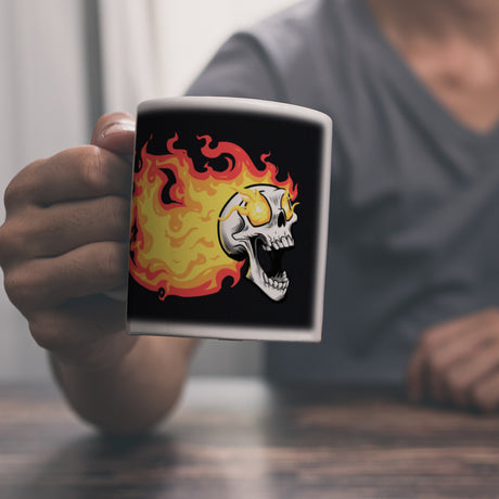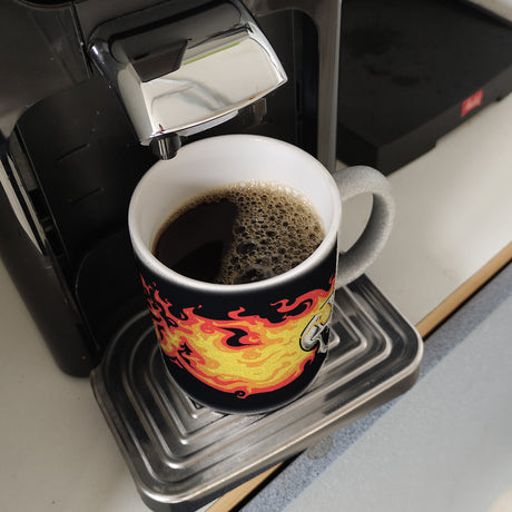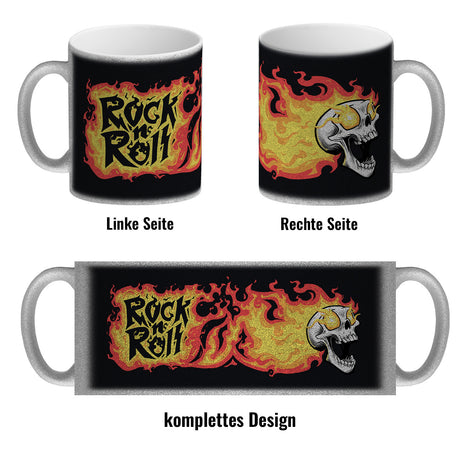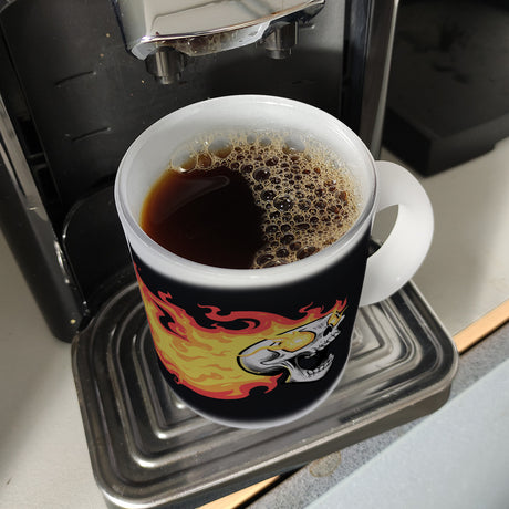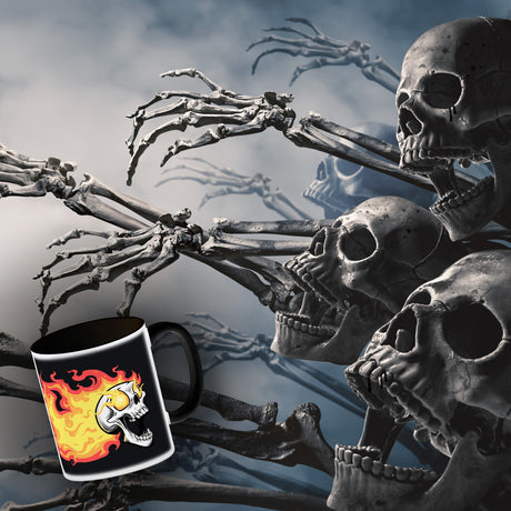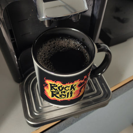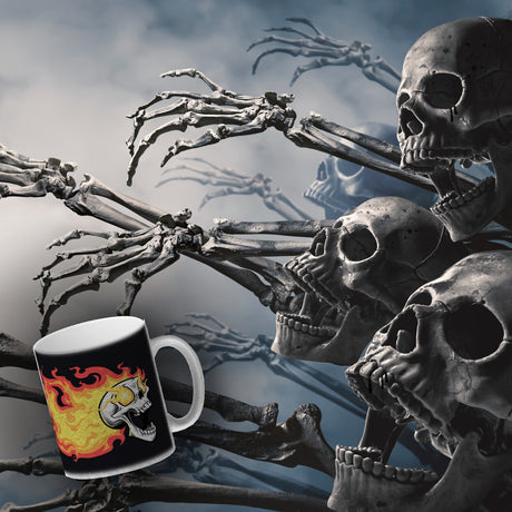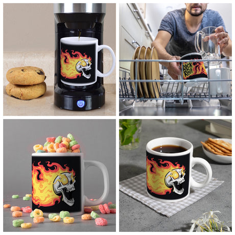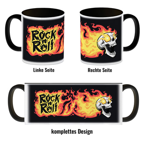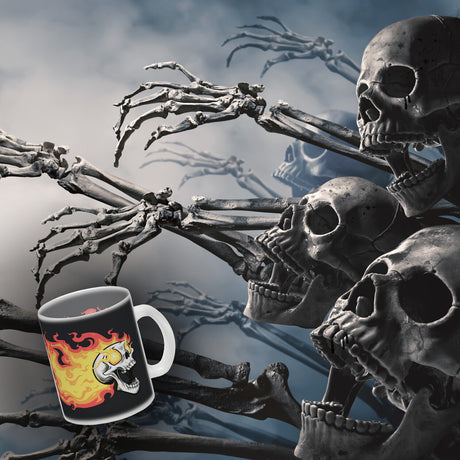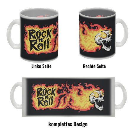 Rock n' Roll Kaffeebecher mit Flammen und Totenkopf