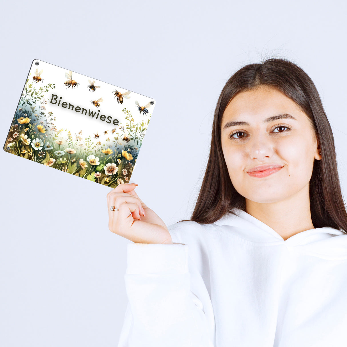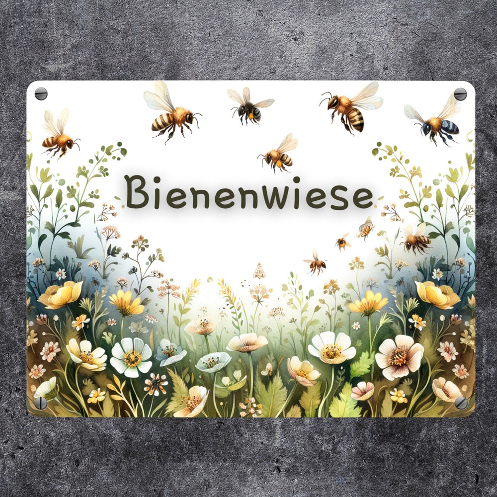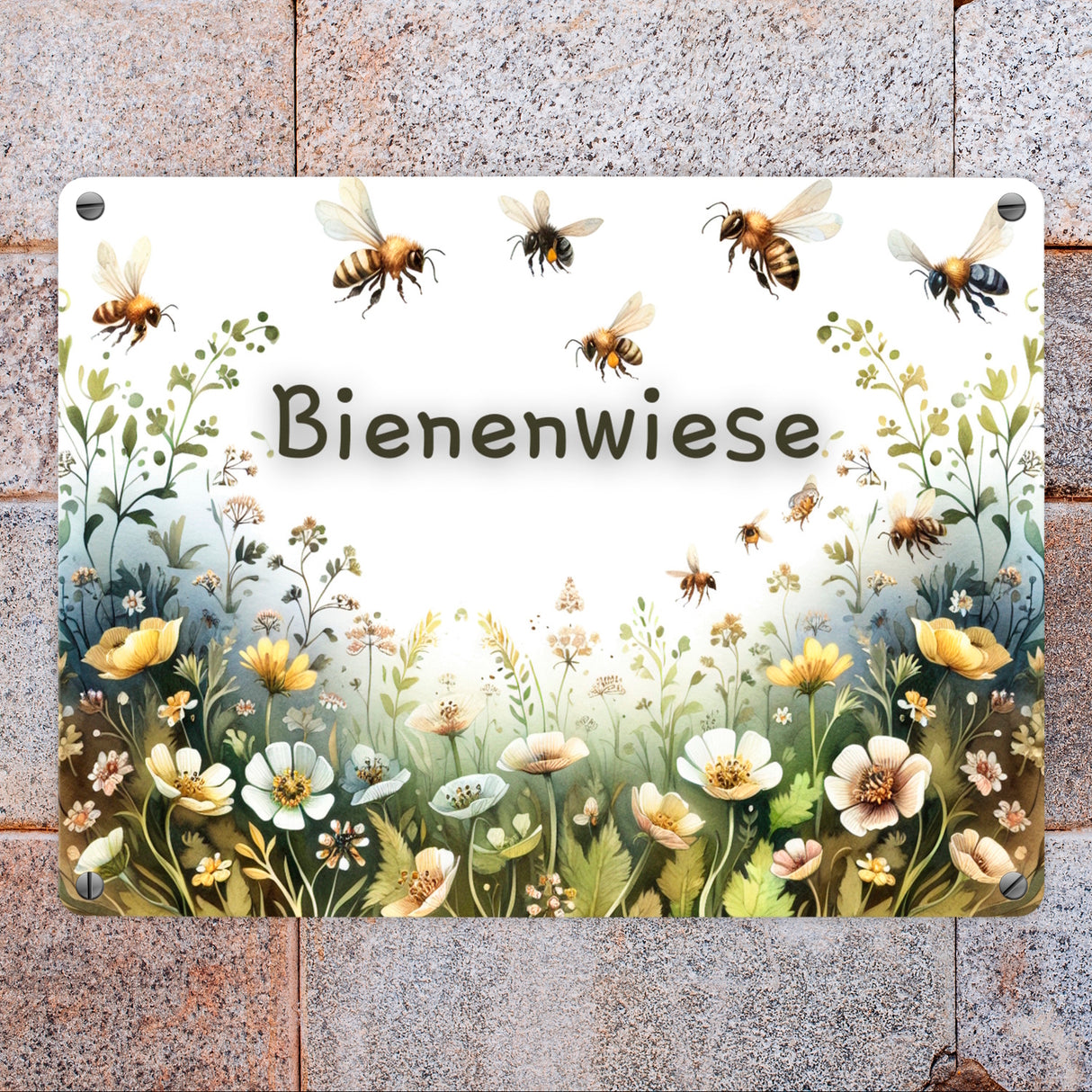 • 1x Bienenwiese Metallschild in 15x20 cm in der gewählten Größe