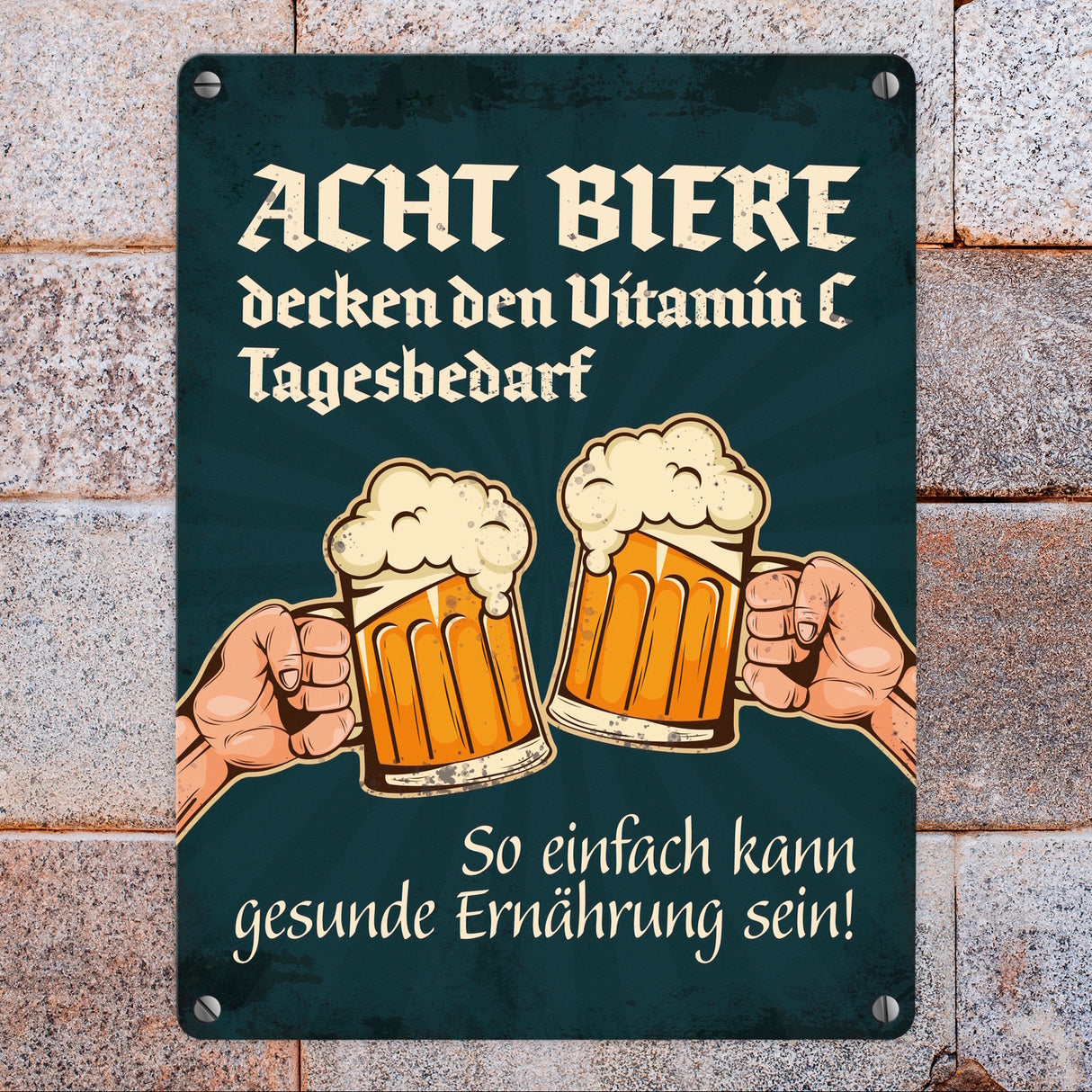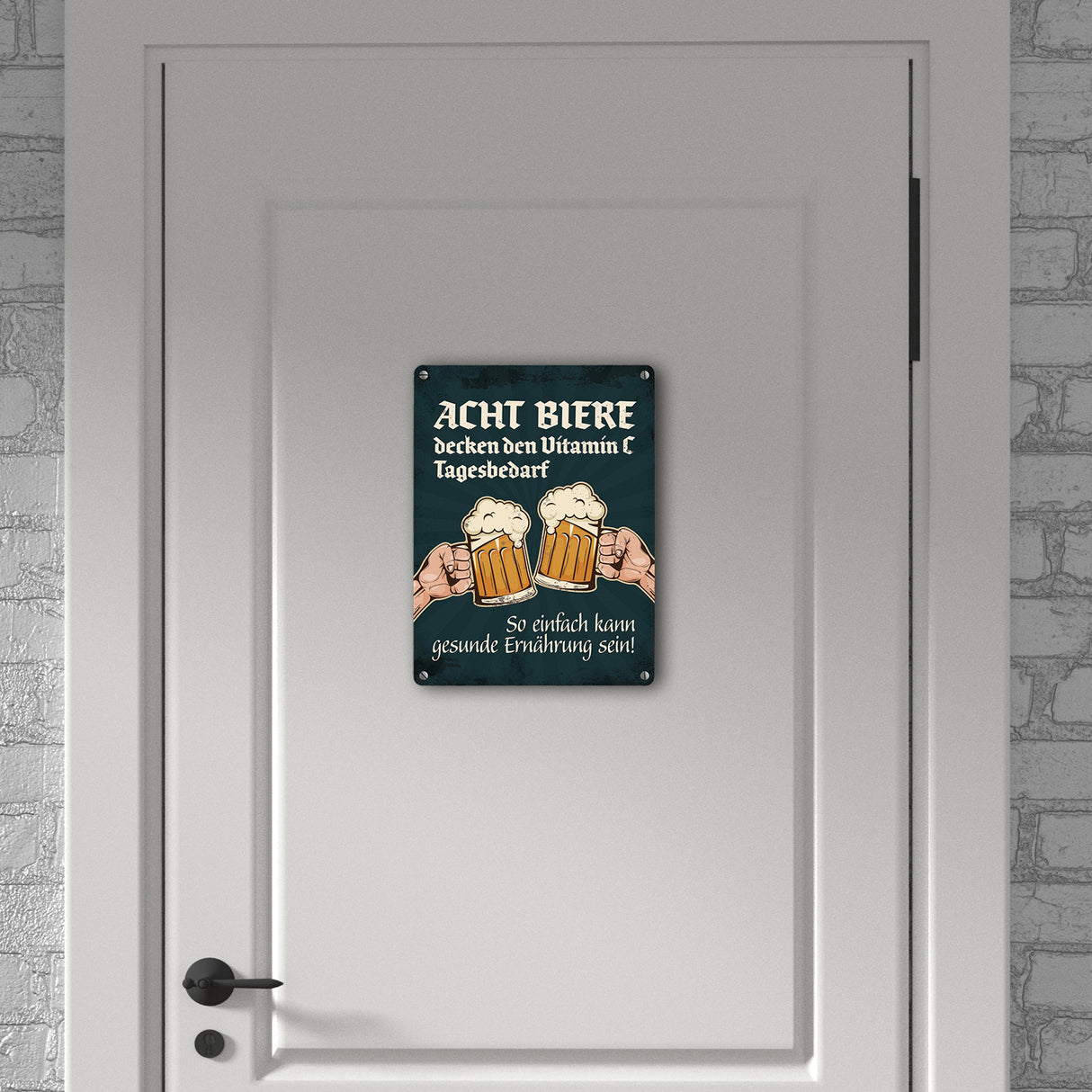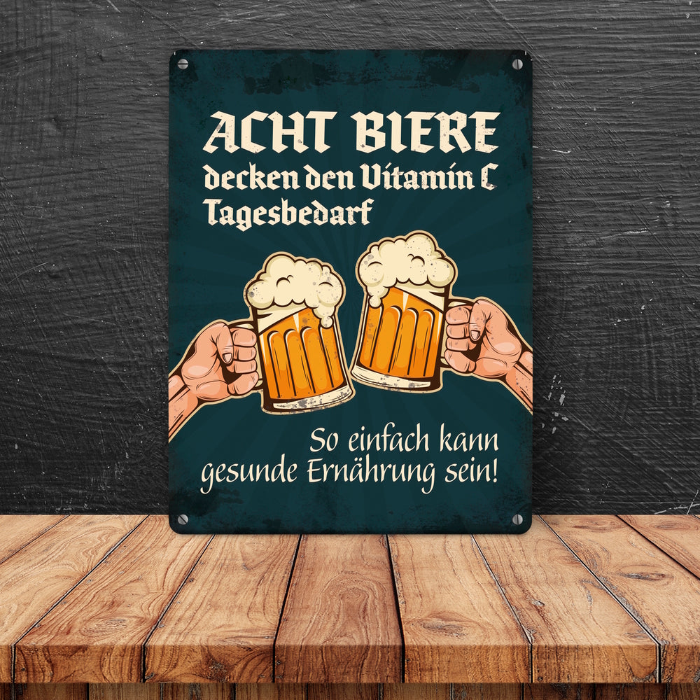 - 1x Bier Metallschild mit Spruch: Acht Biere decken den Vitamin C Tagesbedarf in der gewählten Größe
