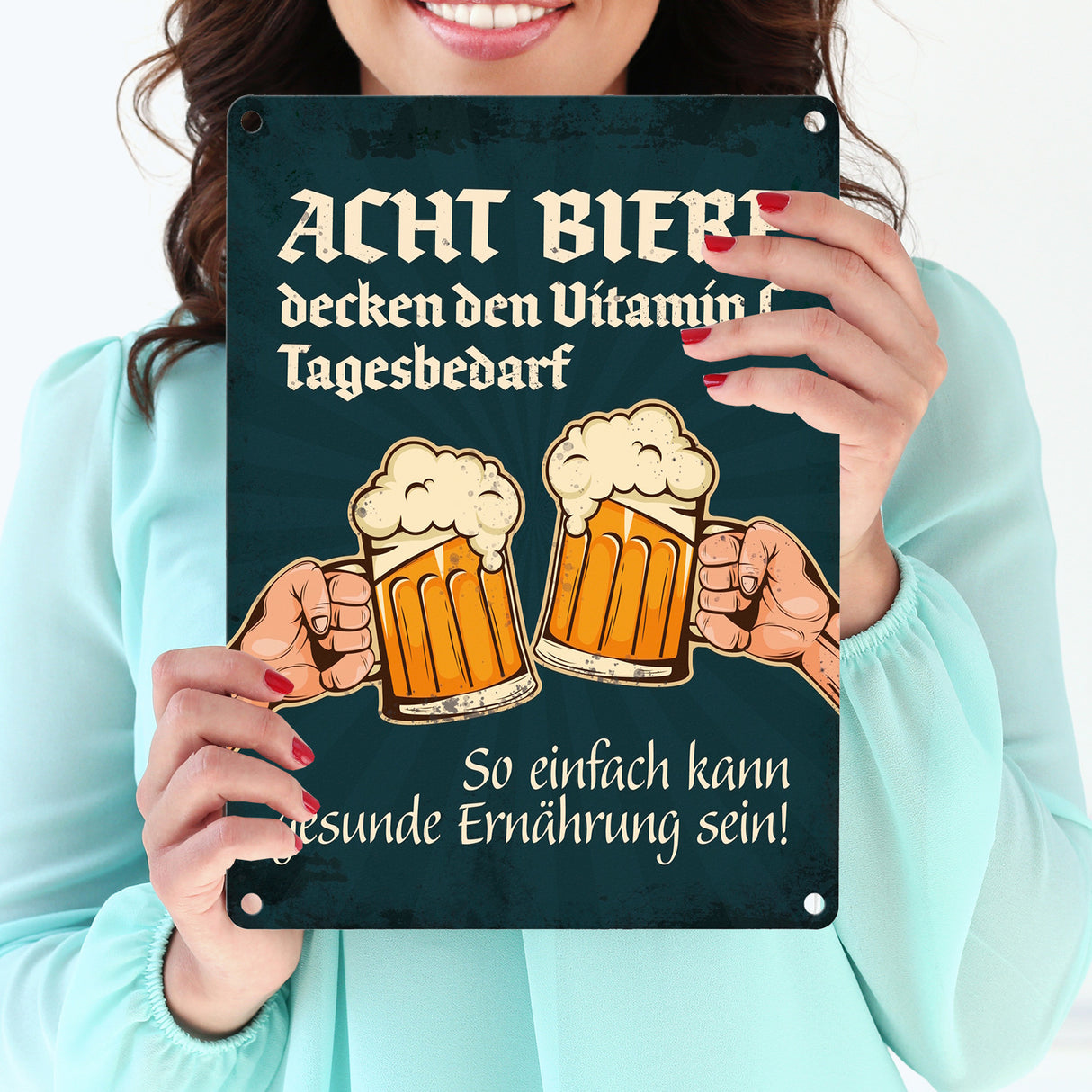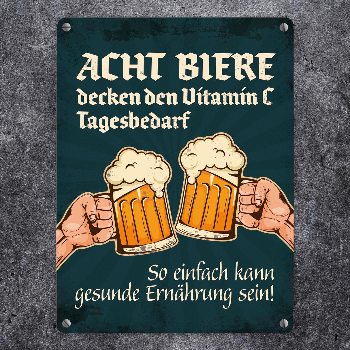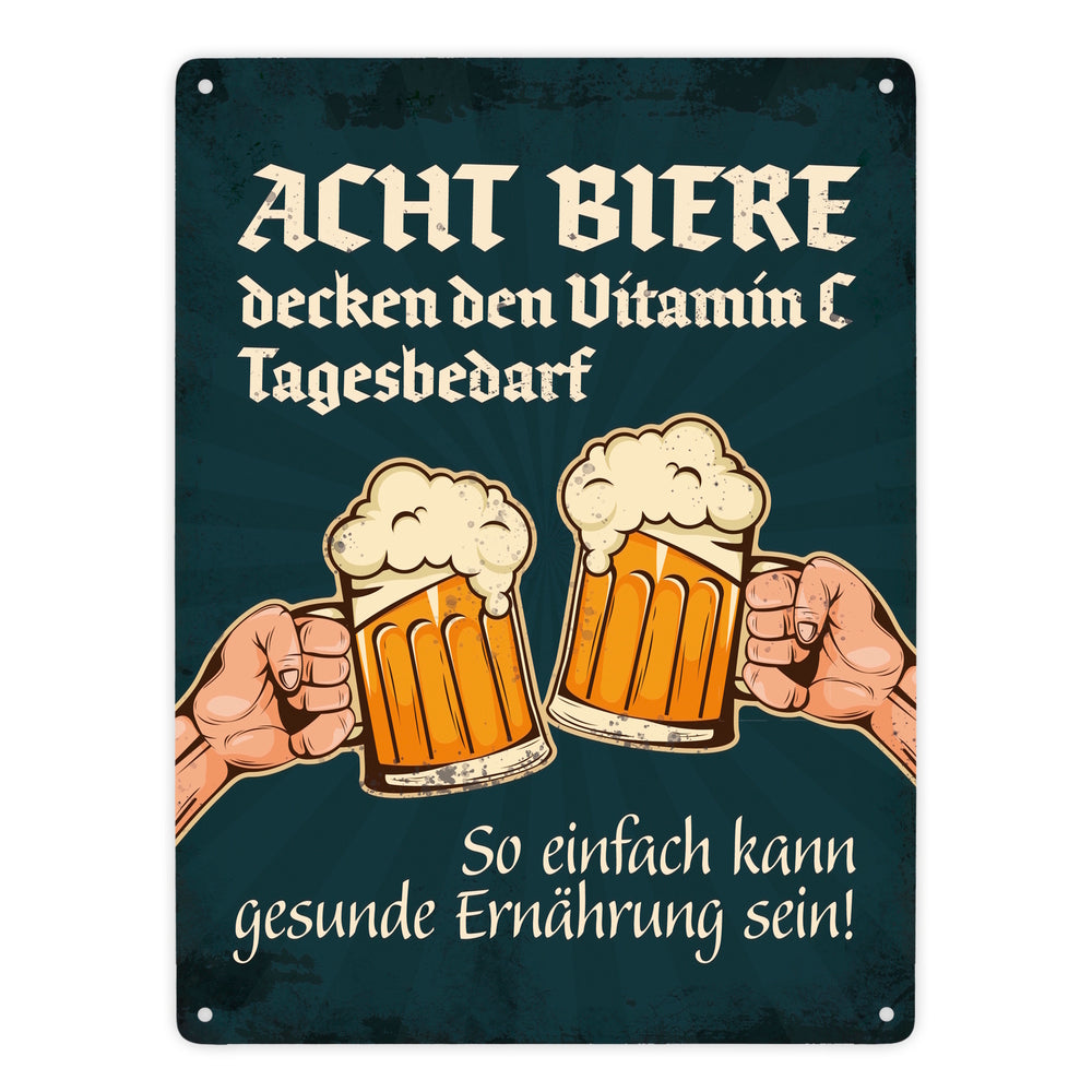 - 1x Bier Metallschild mit Spruch: Acht Biere decken den Vitamin C Tagesbedarf in der gewählten Größe