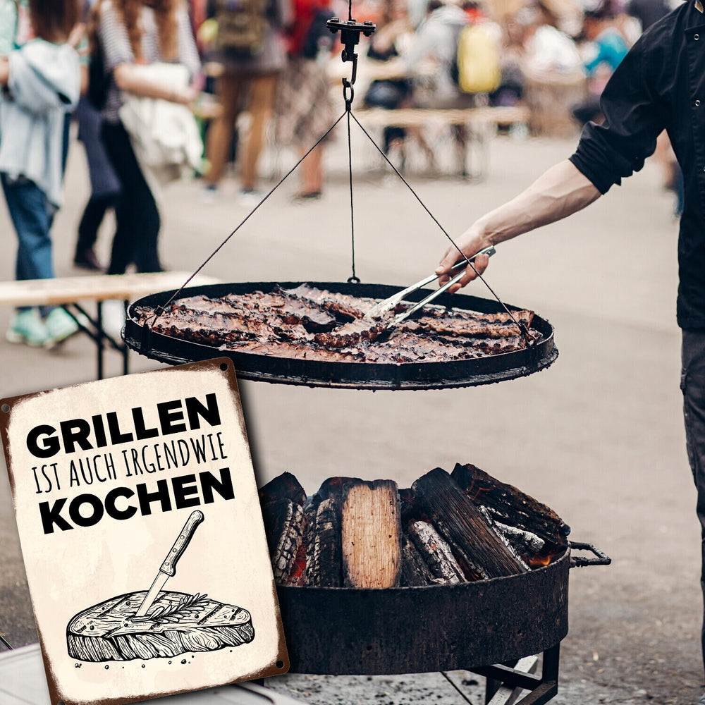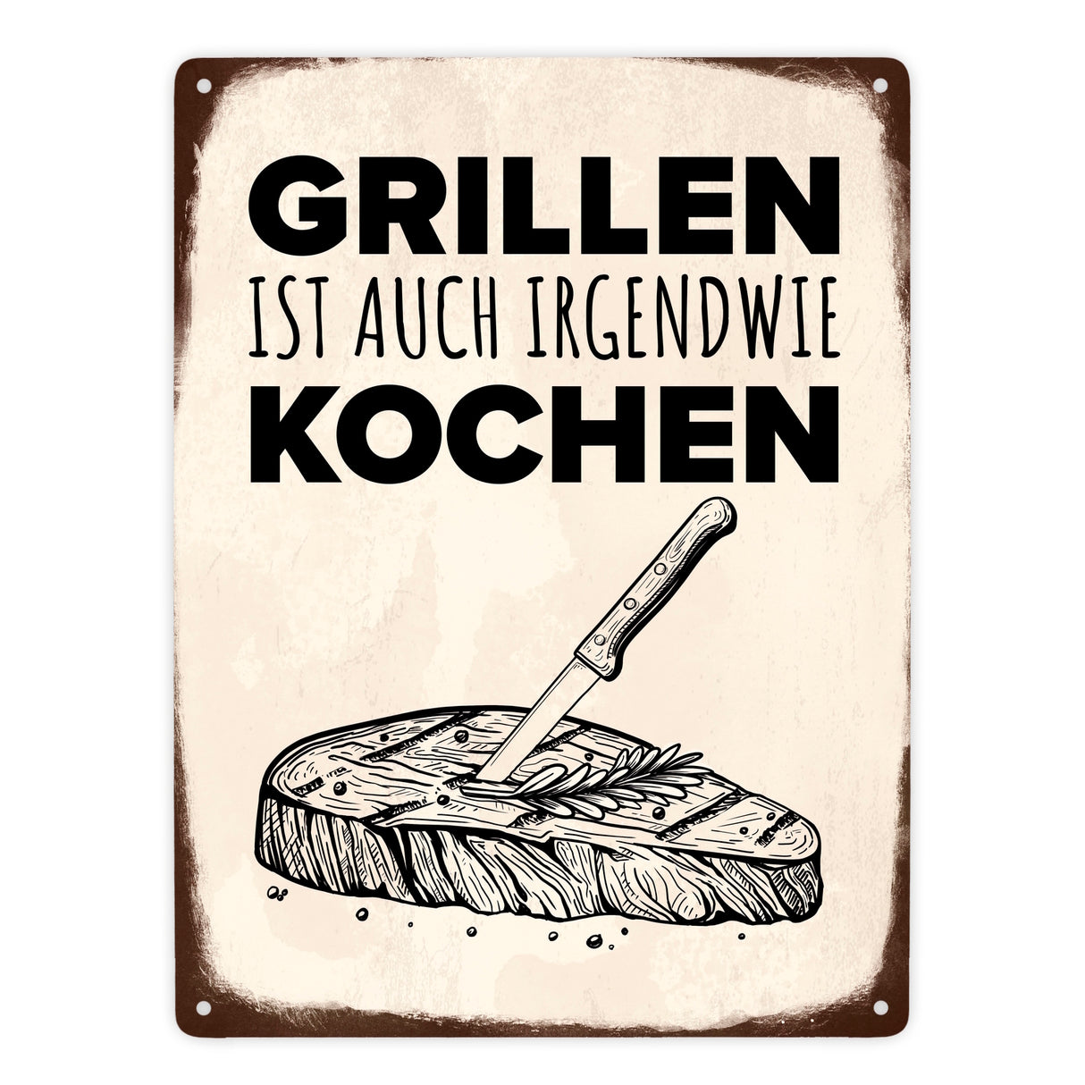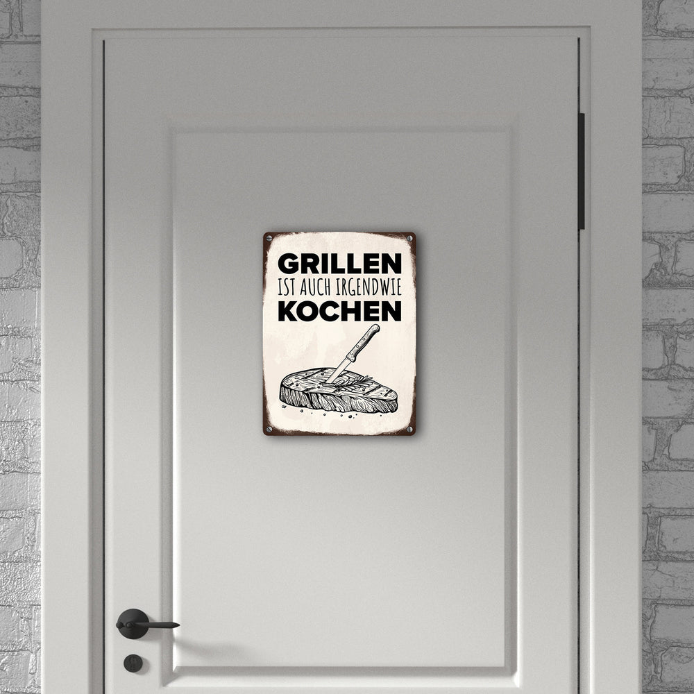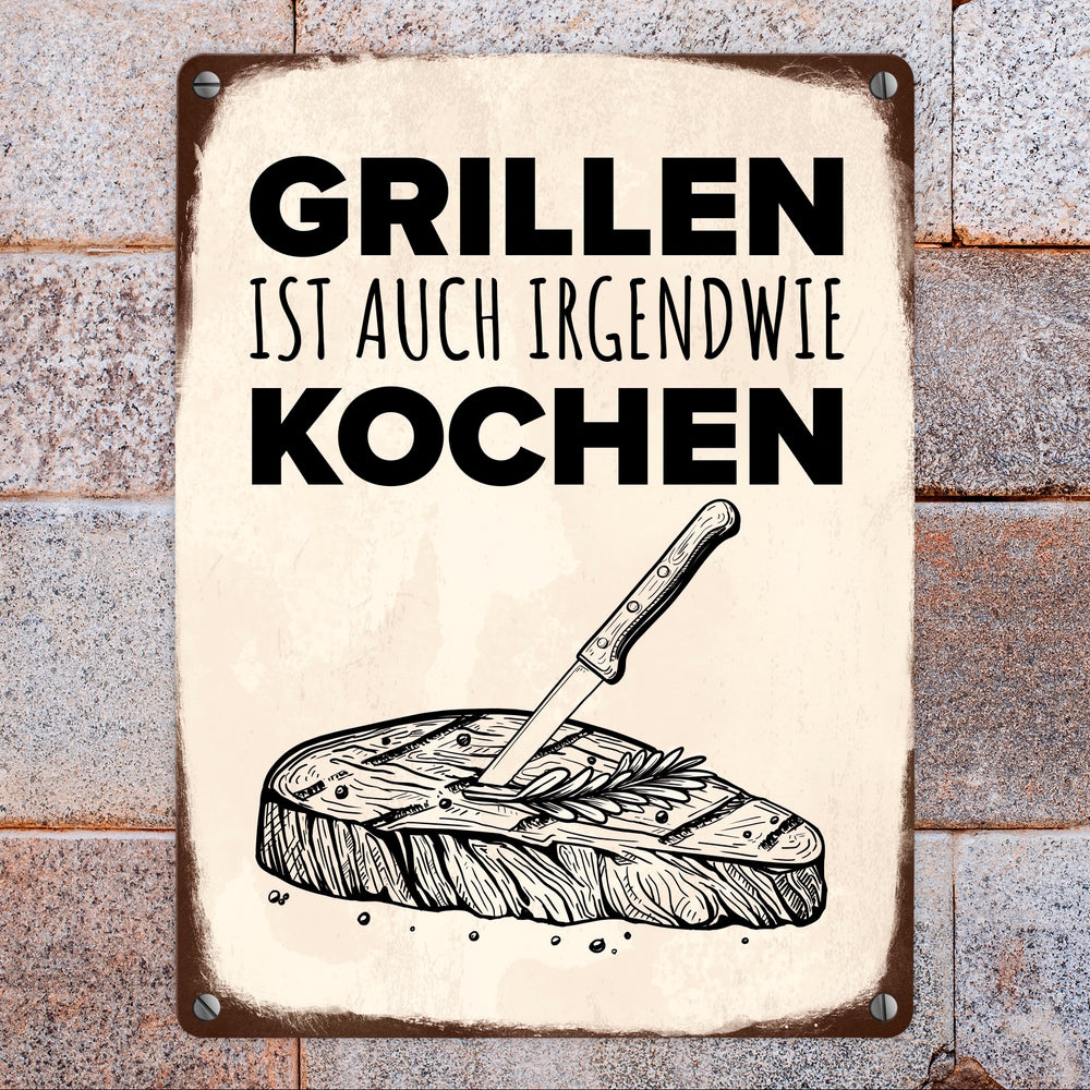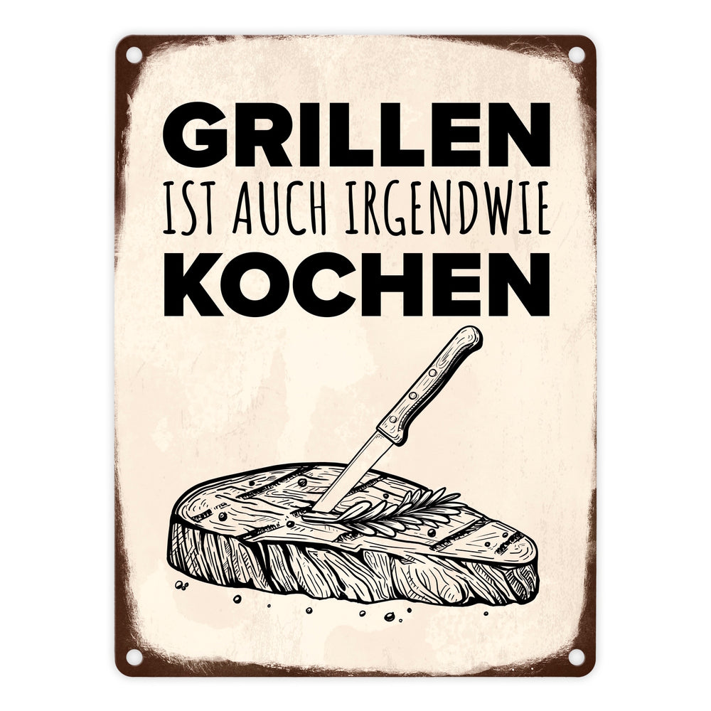 Grillen ist auch irgendwie kochen Metallschild mit Steak Motiv