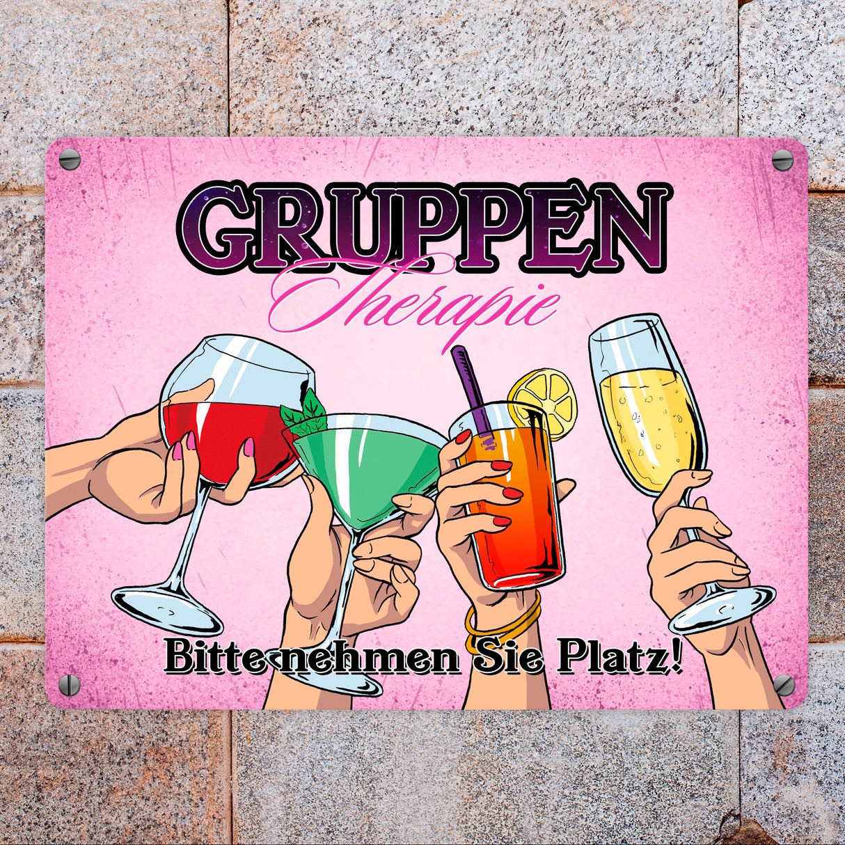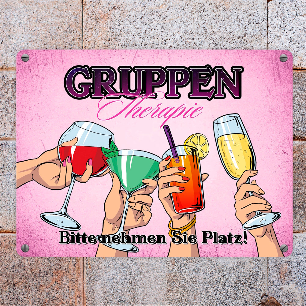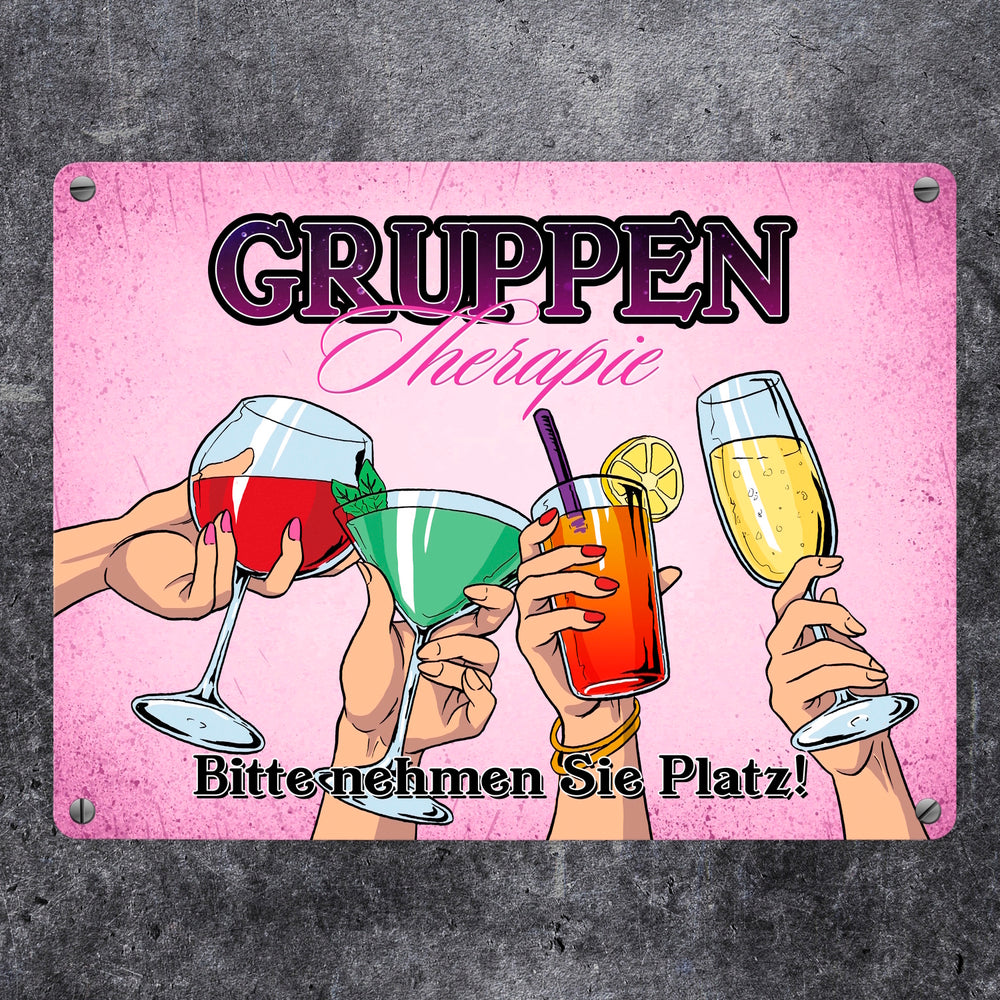 Gruppentherapie für Frauen Metallschild in 15x20 cm im trendigen Retrolook