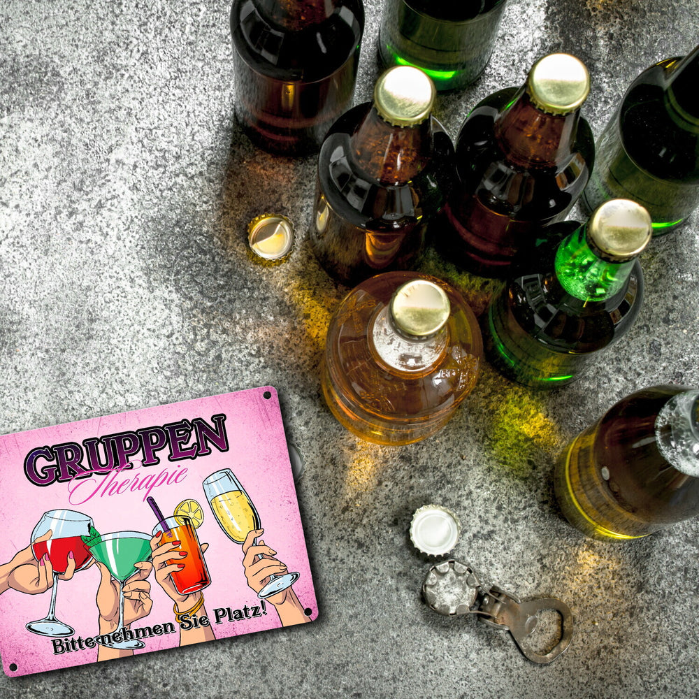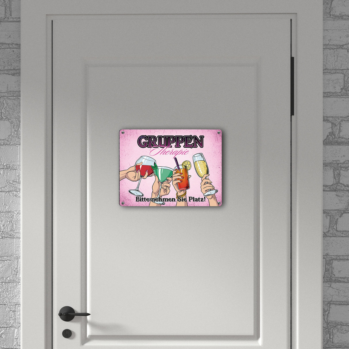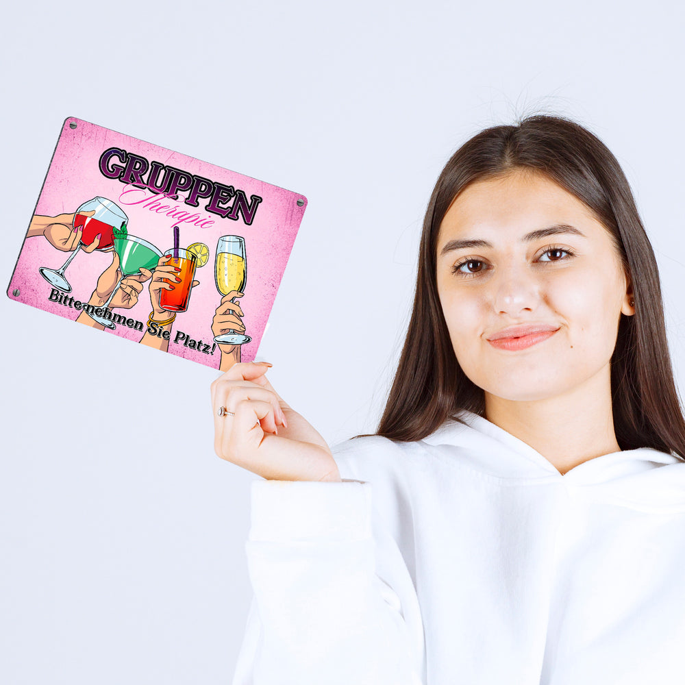 Gruppentherapie für Frauen Metallschild in 15x20 cm im trendigen Retrolook