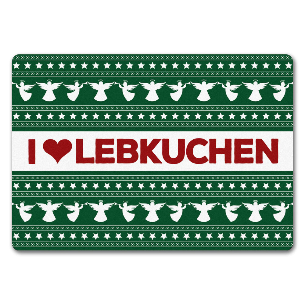 I love Lebkuchen Fußmatte ohne Rand in grün mit Weihnachtsmuster Motiv