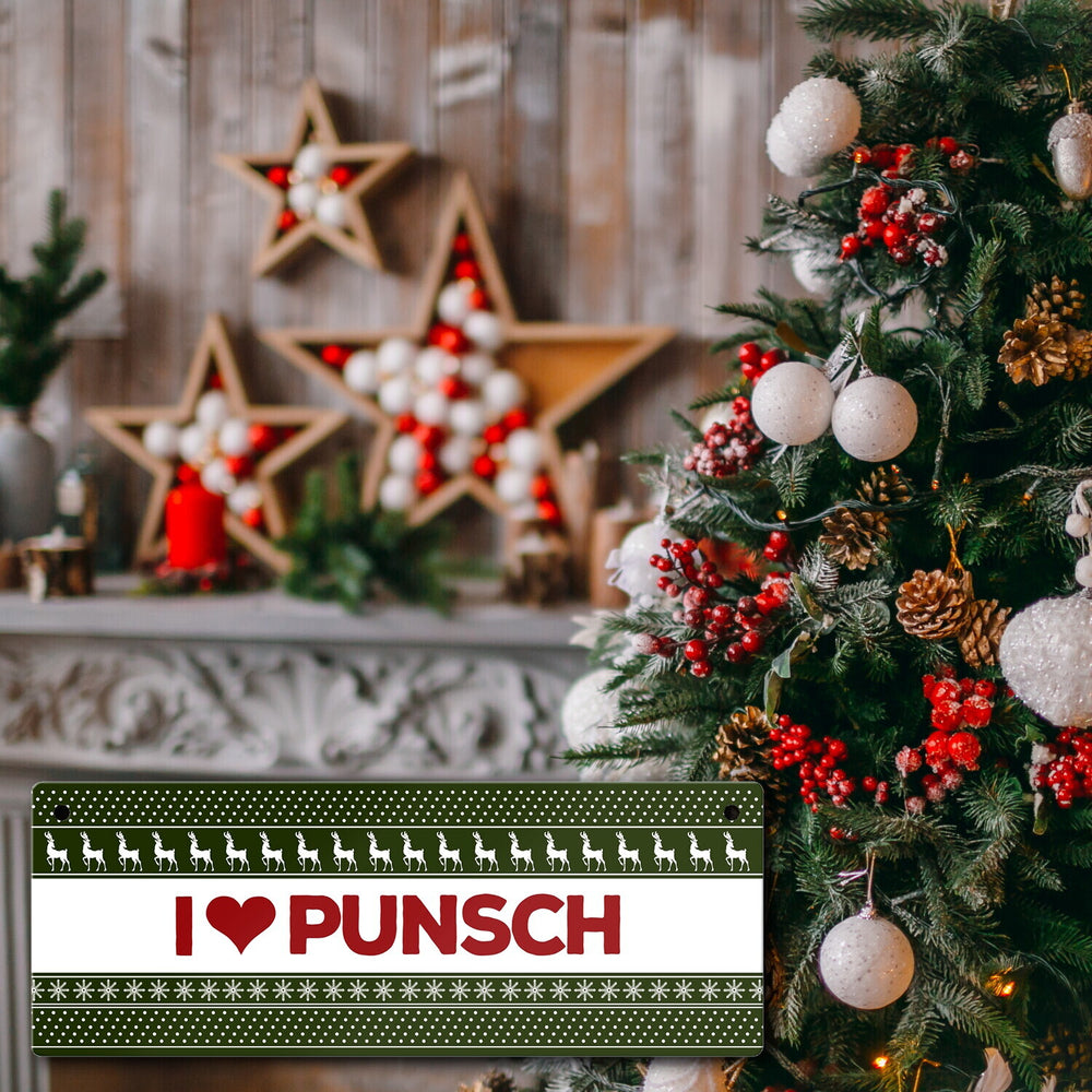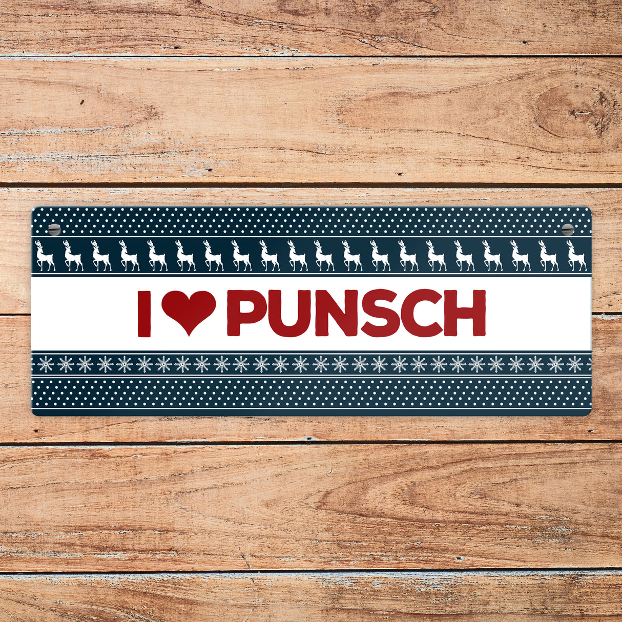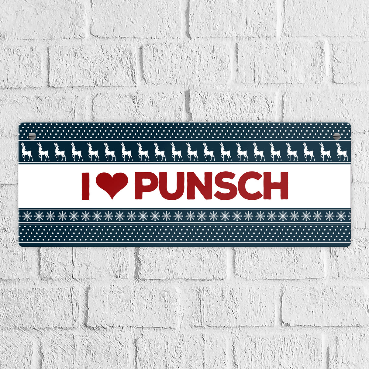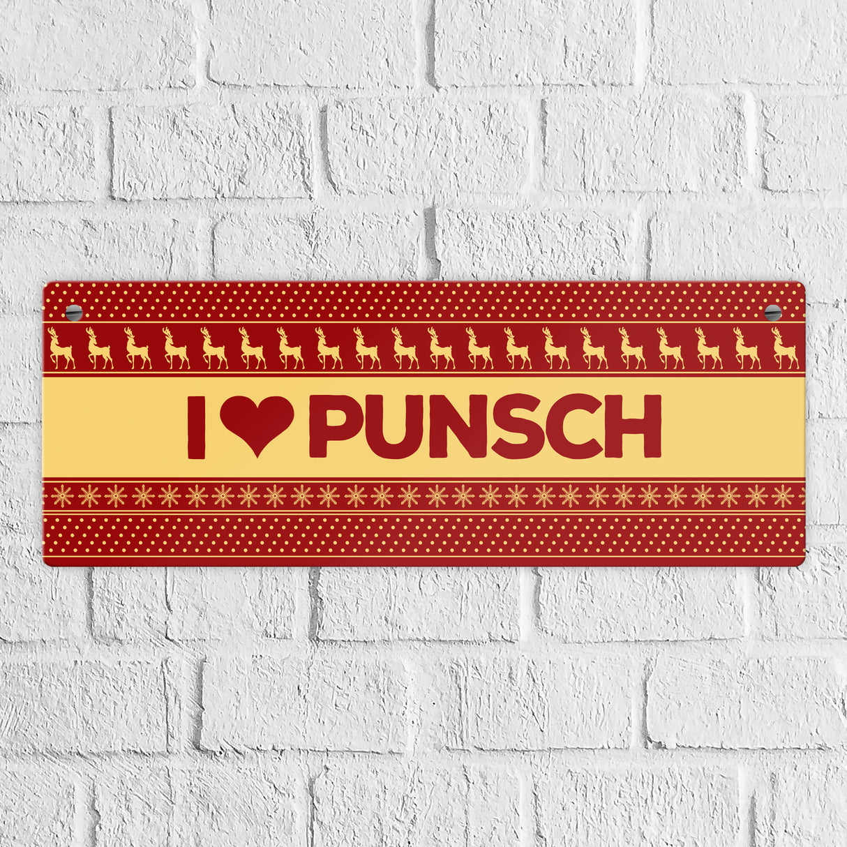 - 1x I love Punsch Metallschild mit Weihnachtsmuster Motiv Weihnachten Herz in der gewählten Größe