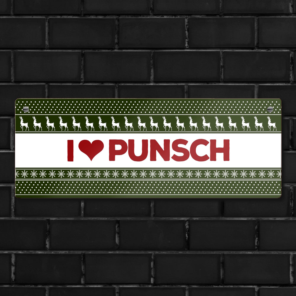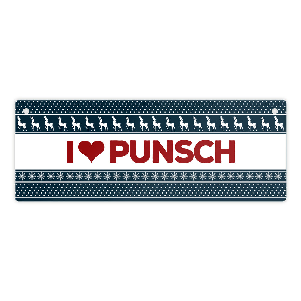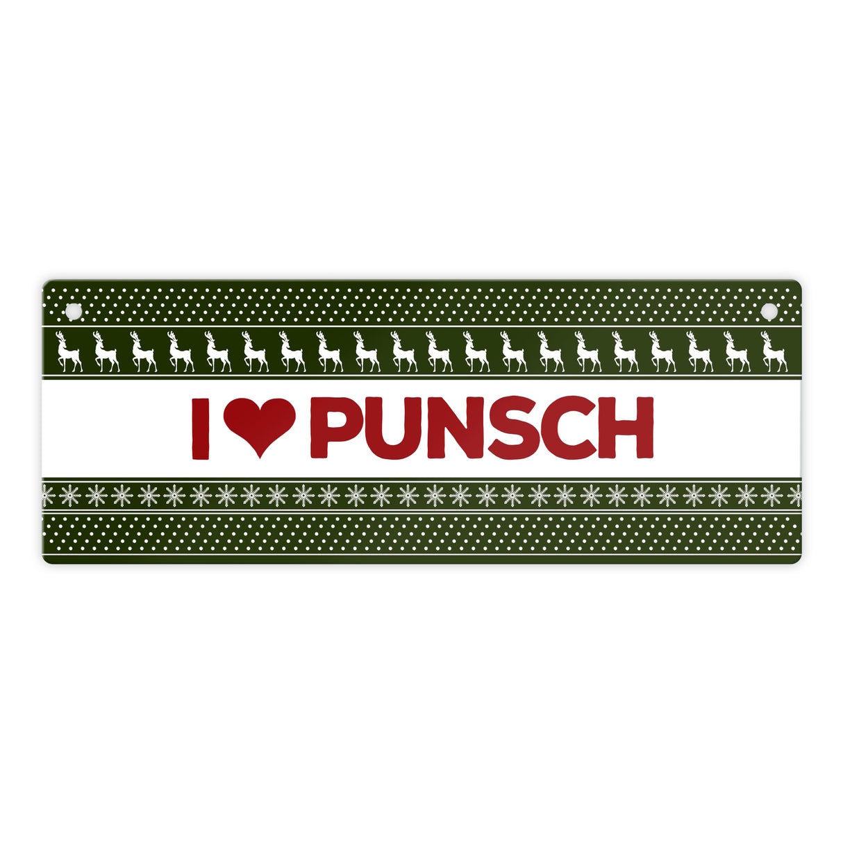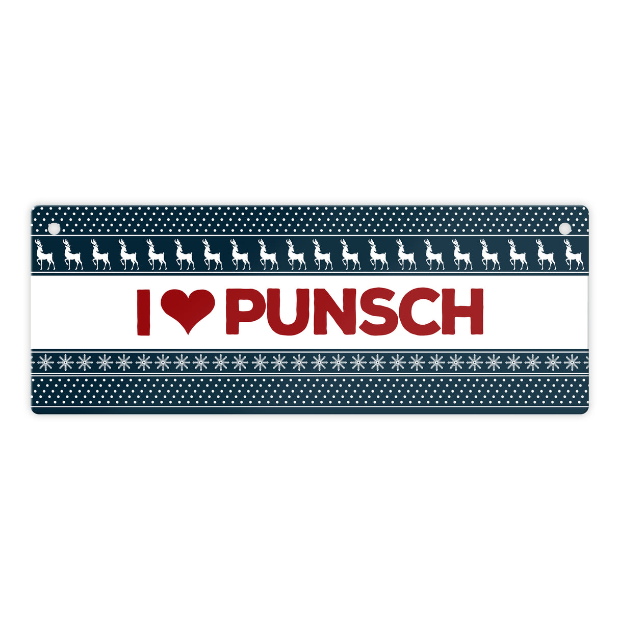 - 1x I love Punsch Metallschild mit Weihnachtsmuster Motiv Weihnachten Herz in der gewählten Größe
