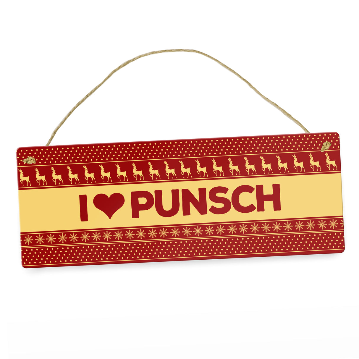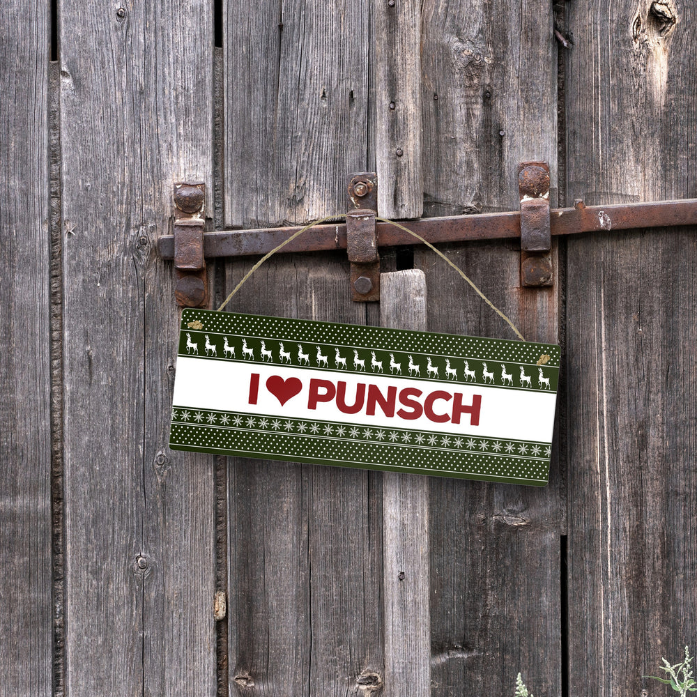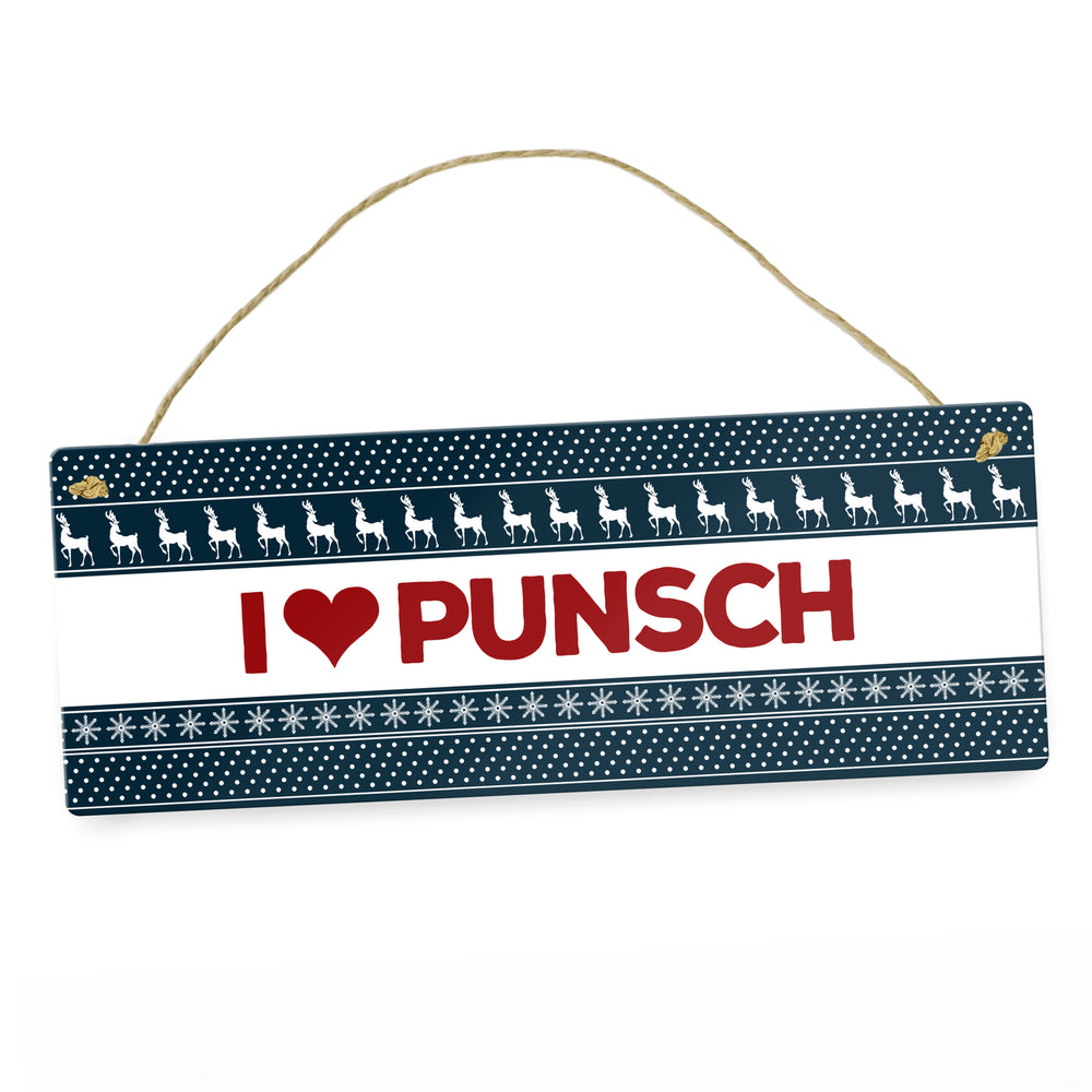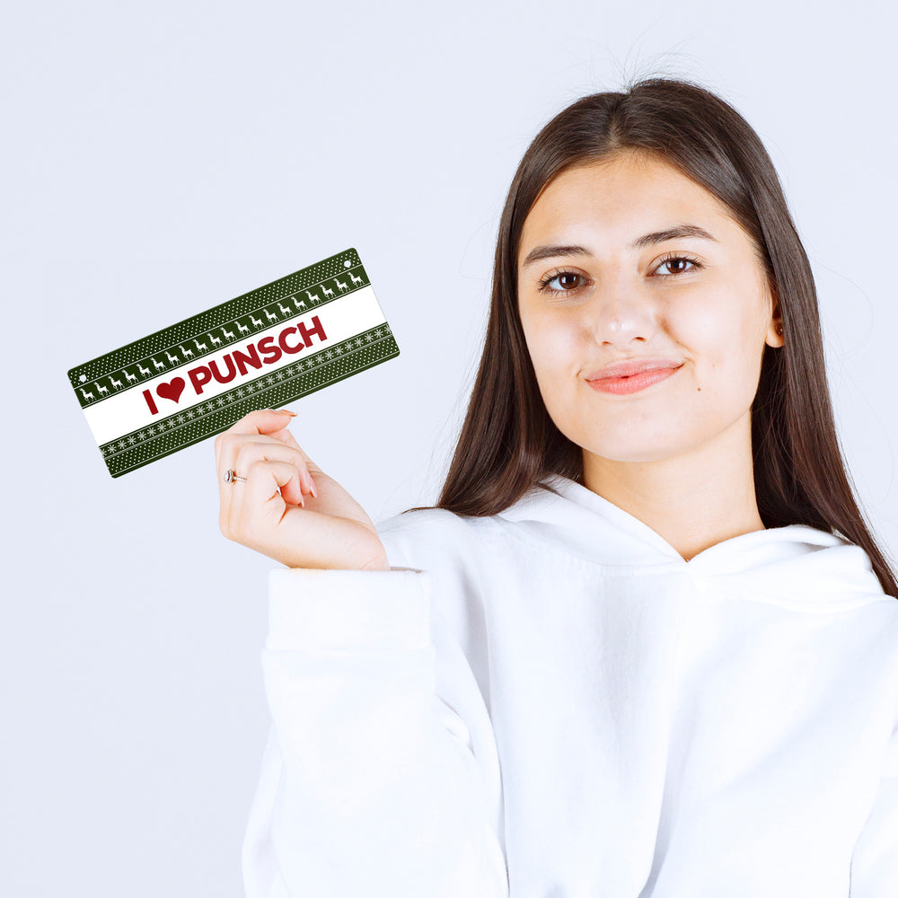 - 1x I love Punsch Metallschild mit Weihnachtsmuster Motiv Weihnachten Herz in der gewählten Größe