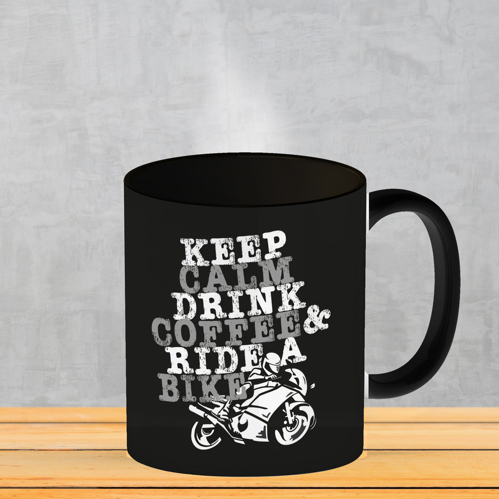 Keep calm & ride a bike Kaffeebecher zum Thema Motorrad fahren