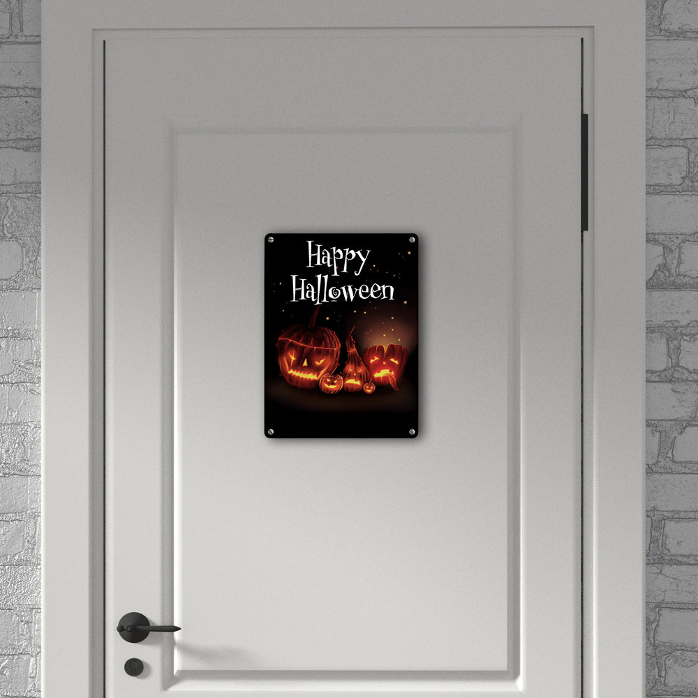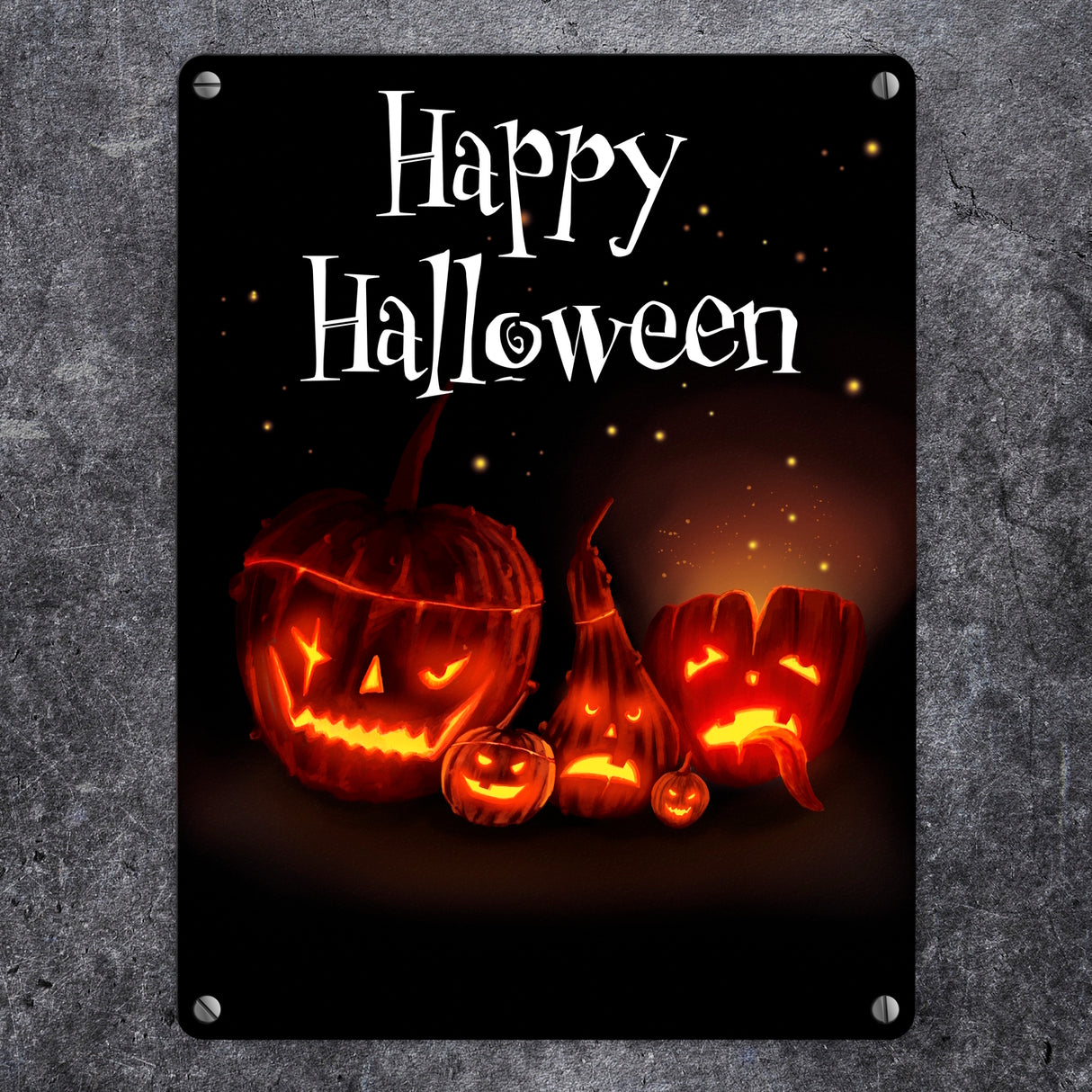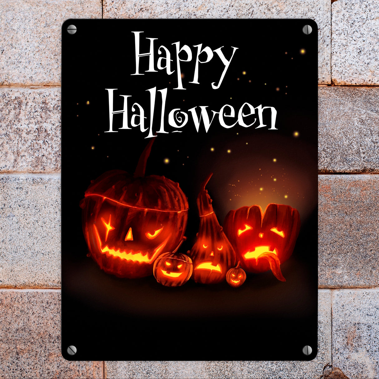 Happy Halloween Metallschild mit lustigen Kürbissen