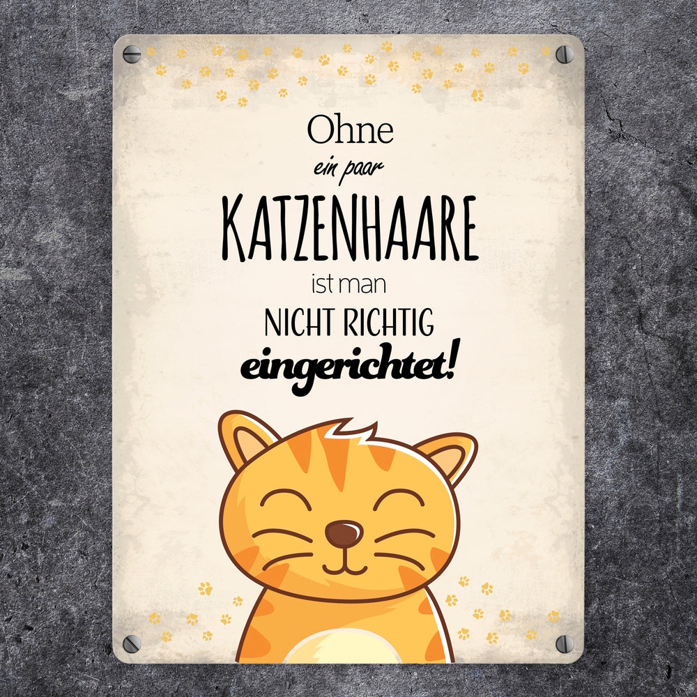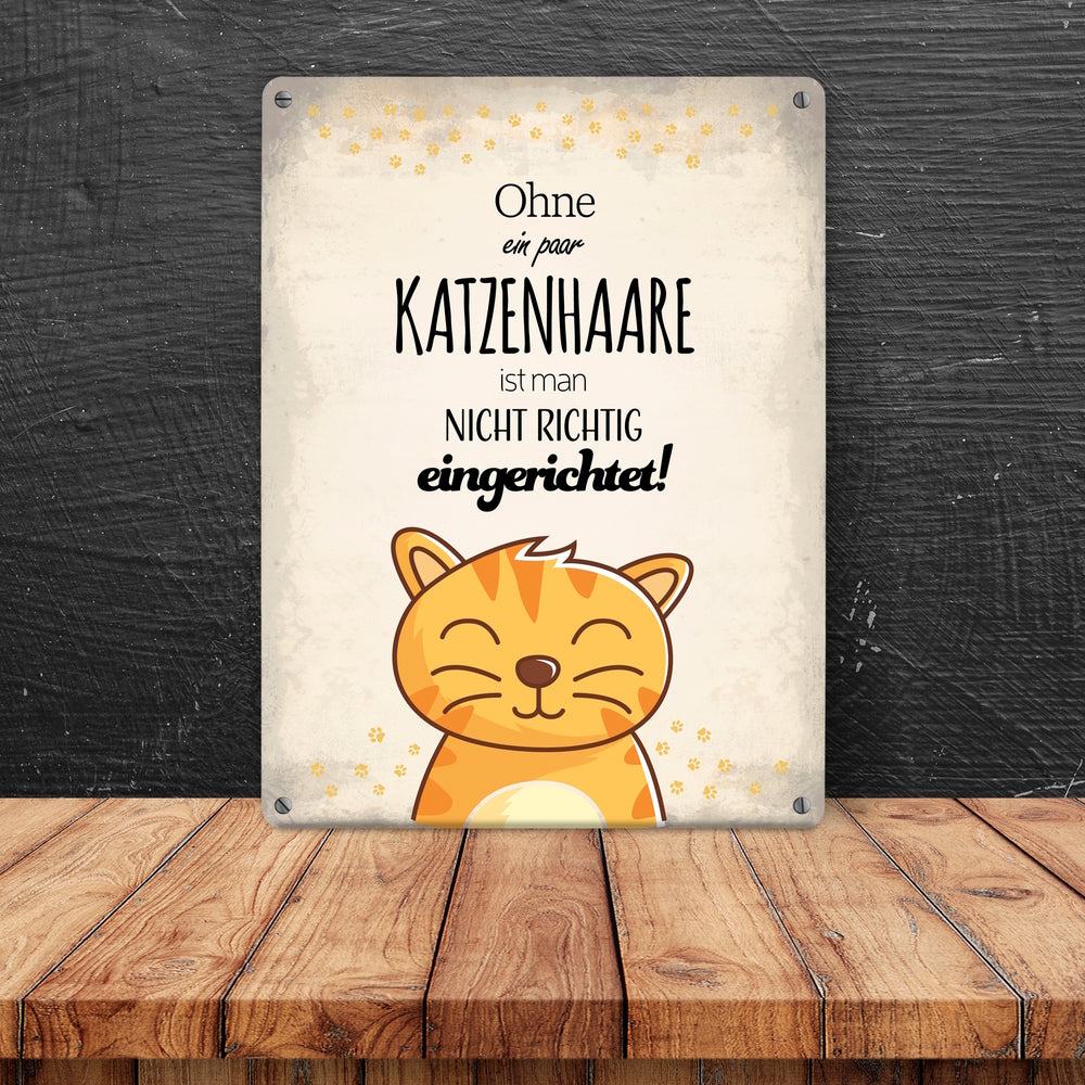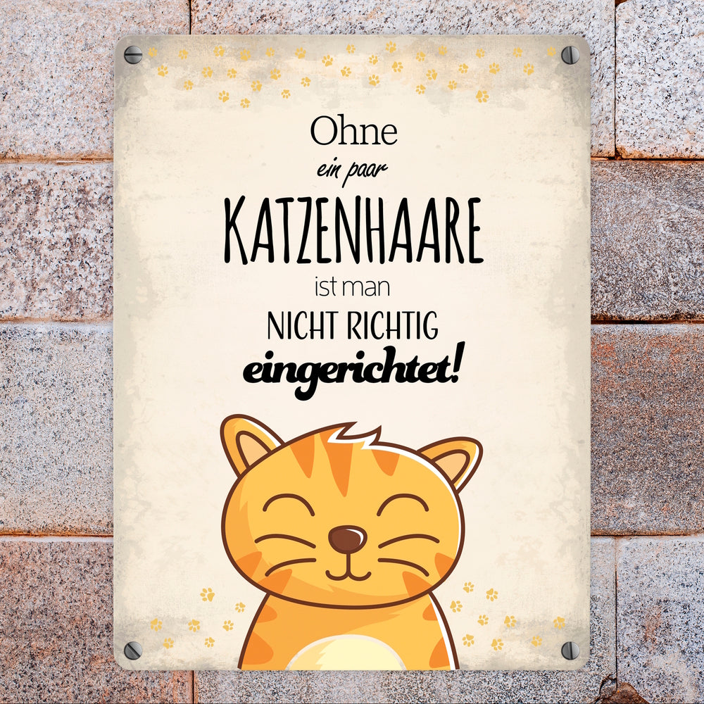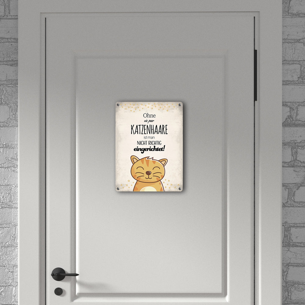 - 1x Metallschild mit Spruch: Ohne ein paar Katzenhaare ist ... in der gewählten Größe